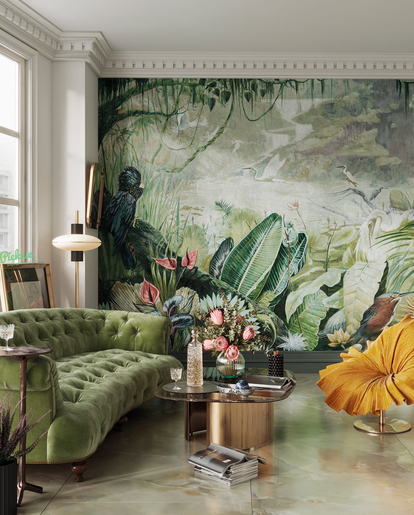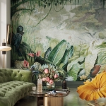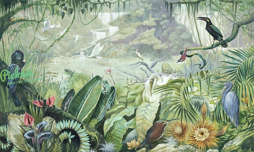 Wonderwall Gaia zielona tropikalna fototapeta dżungla liście i ptaki