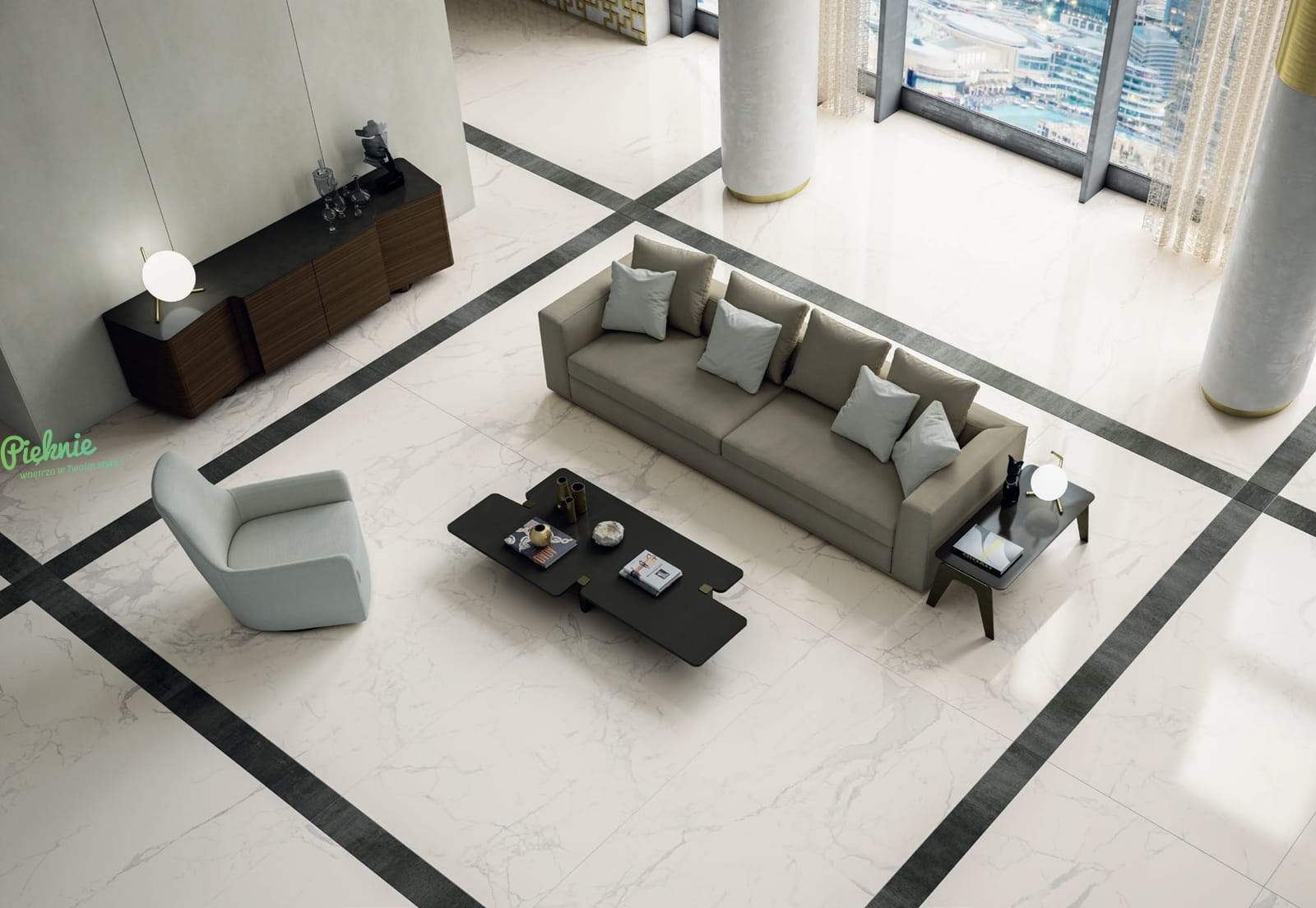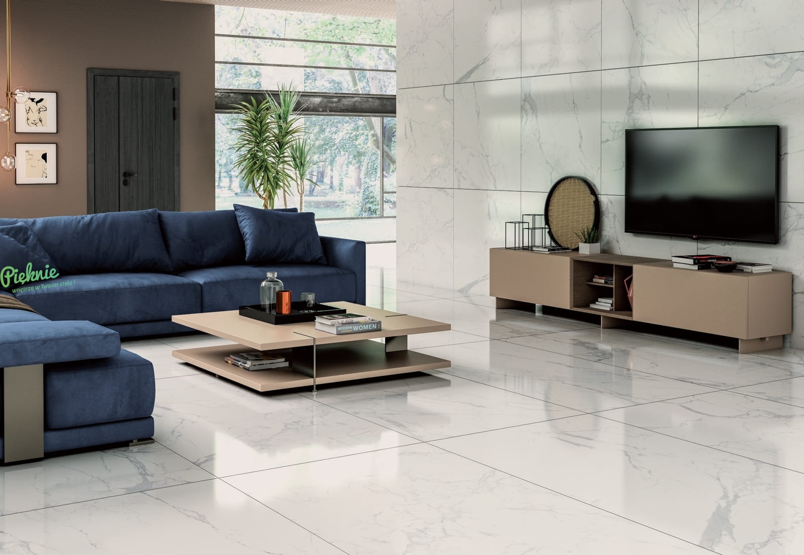 Płytki wielkoformatowe imitujące marmur Alfalux Canova Pro w połysku.