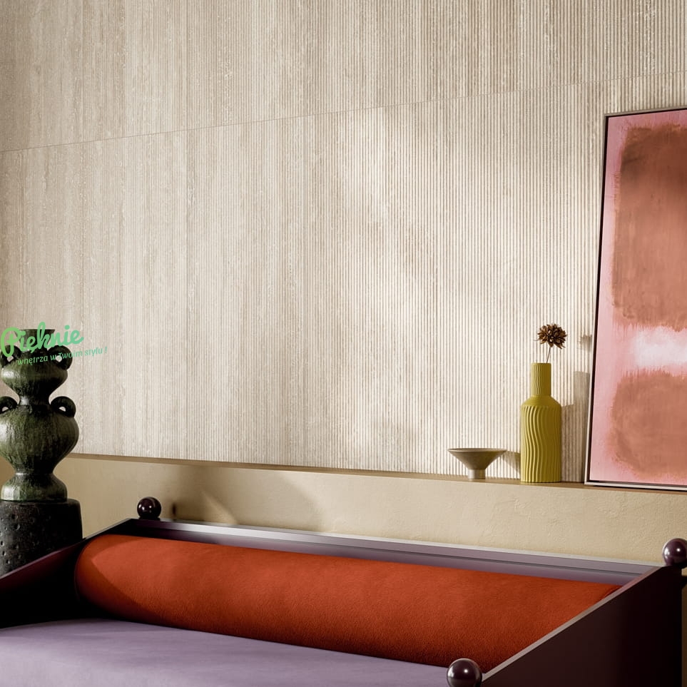 Płytki Alfalux Elegance w formacie 60x120cm o strukturze w wypukłe prążki, wykończenie matowe.