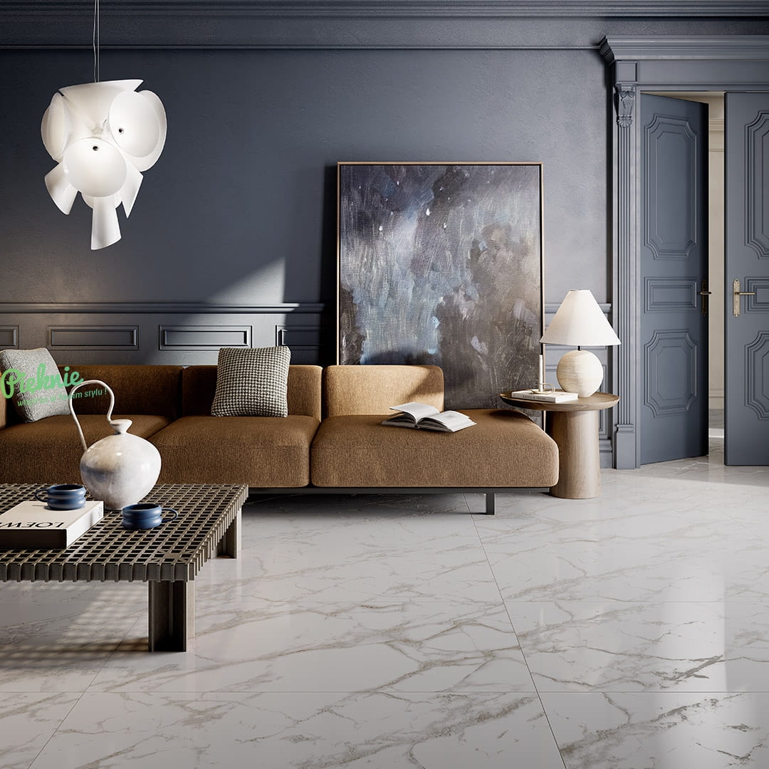 - Powierzchnia gładka z wybiórczo podkreślonym, subtelnie wklęsłym wzorem marmuru