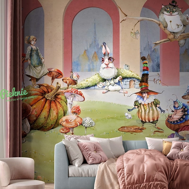 Tapeta na fizelinie z motywem Alicji z Krainy Czarów.