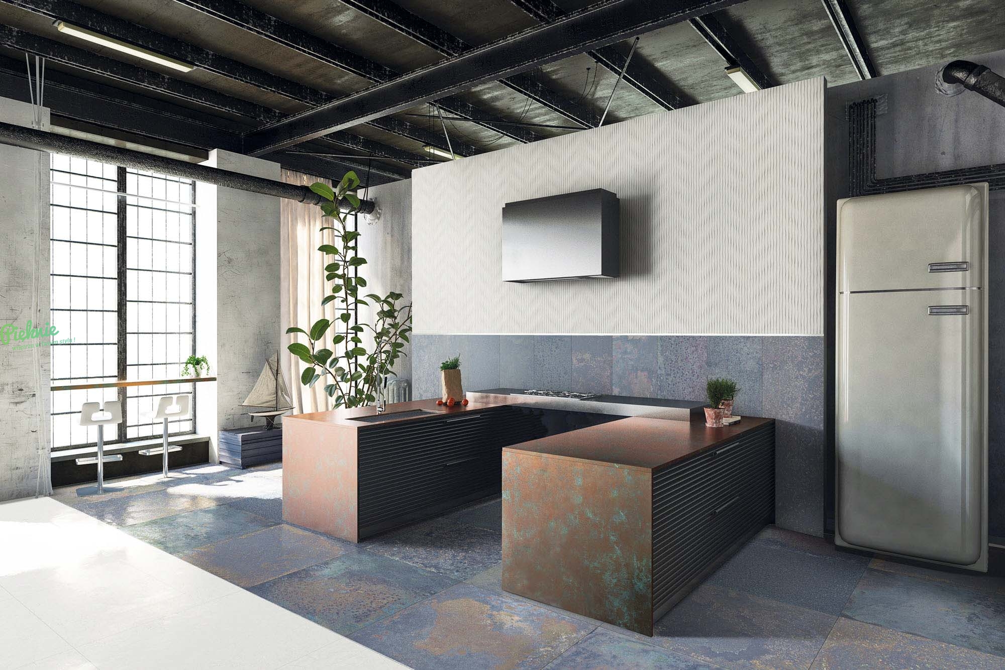 Płytki ścienne marki Aparici z kolekcji Cracked, z imitacją pęknięć na powierzchni.