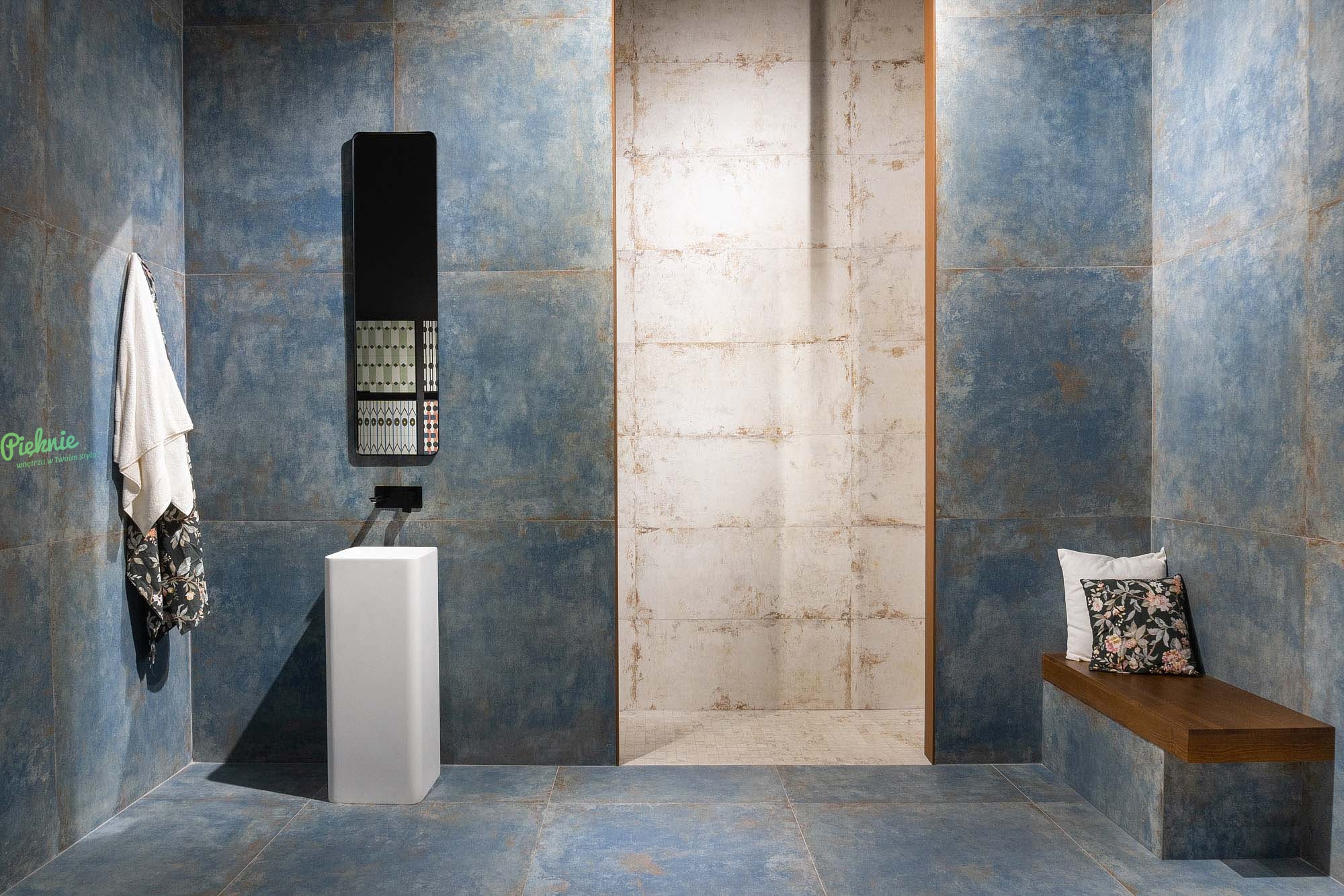 Płytki ścienne z kolekcji Flamed marki Aparici. Styl industrialny, imitacja metalu.