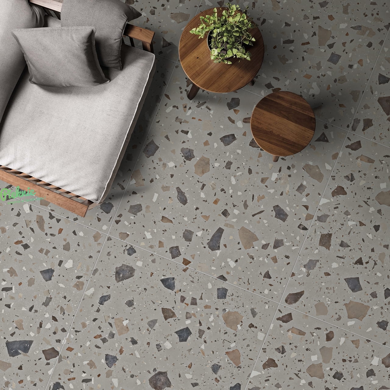 Uniwersalne płytki Aparici Pebble z wzorem kolorowego lastryko.