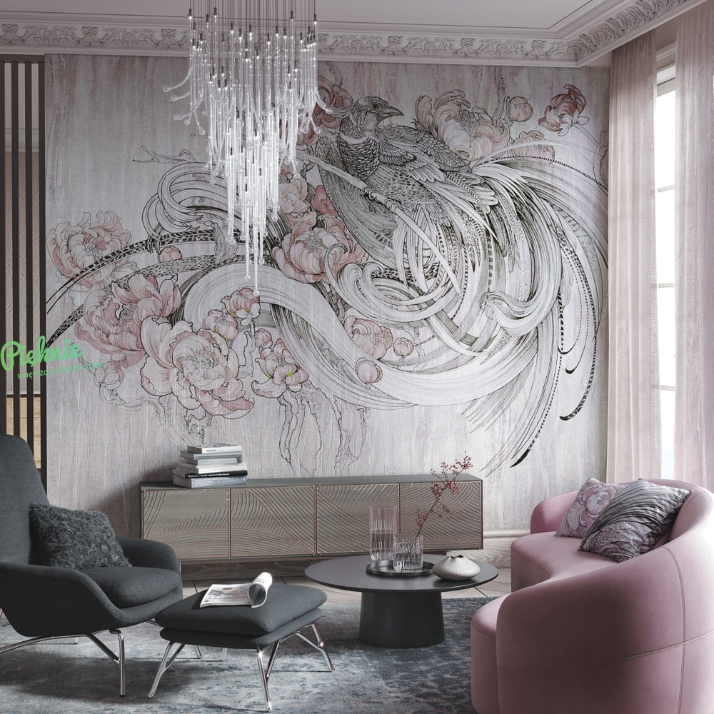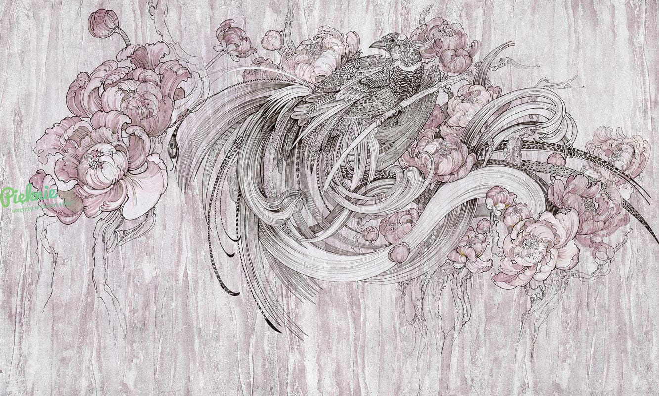 Aves Wonderwall fototapeta z motywem rajskiego ptaka i kwiatów - 3 kolory