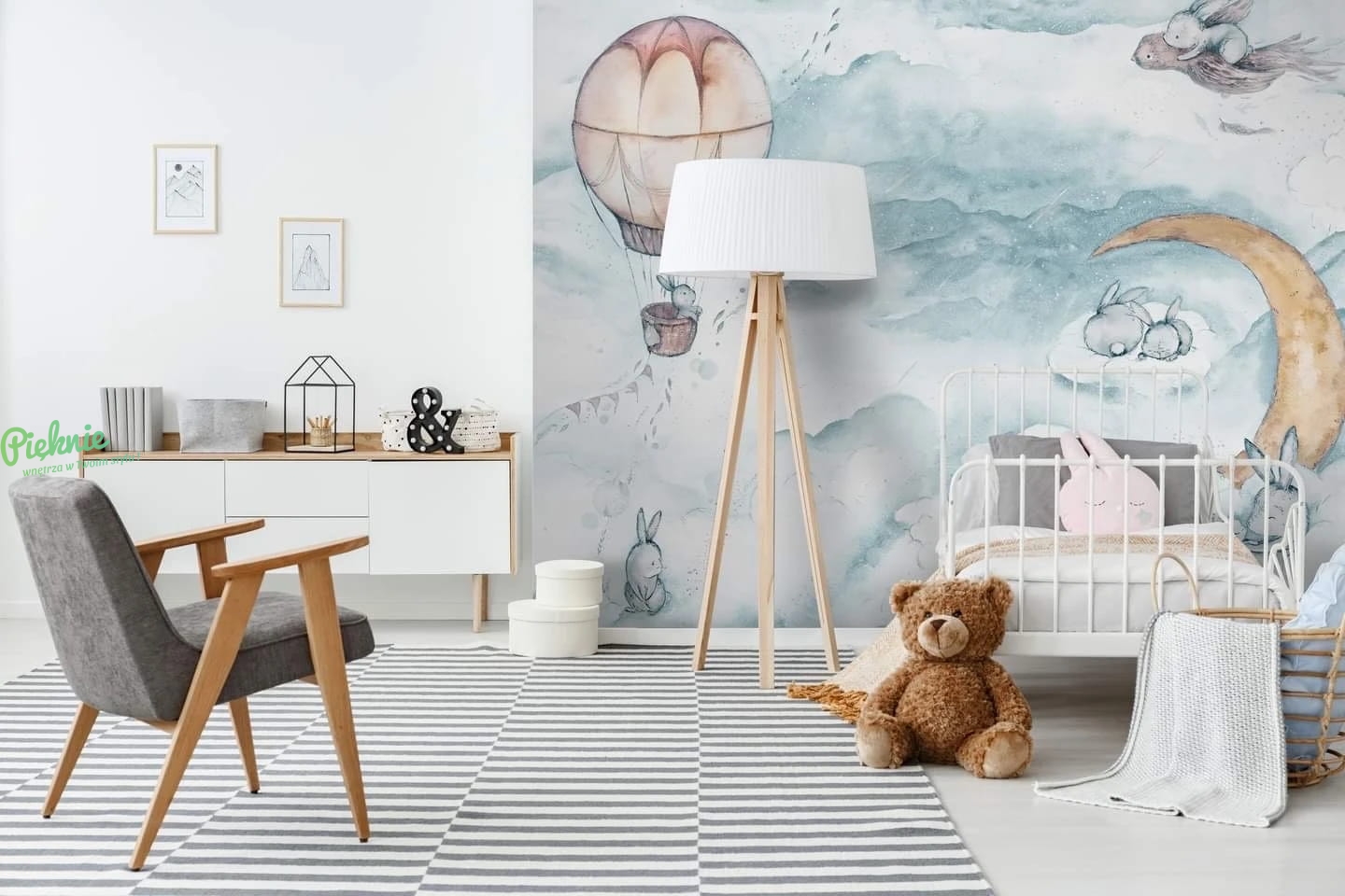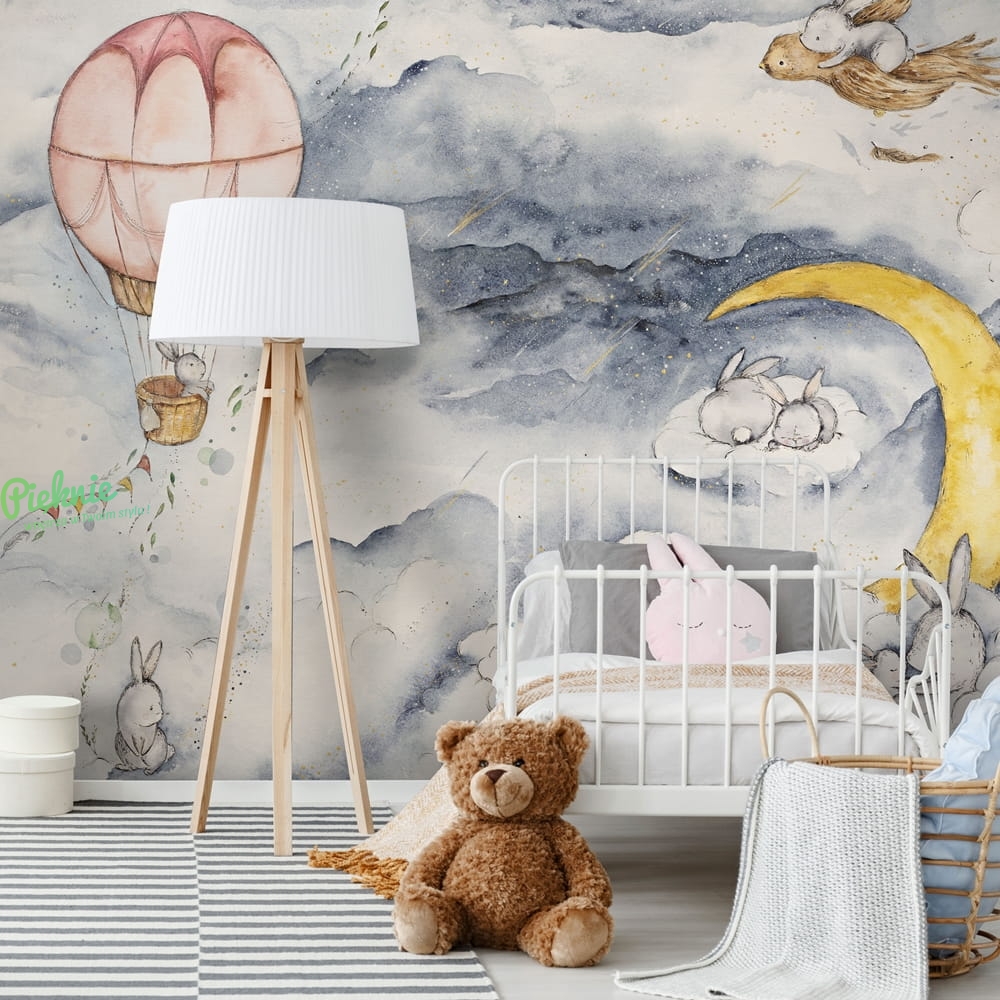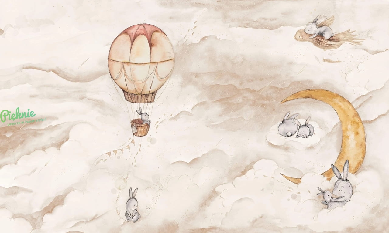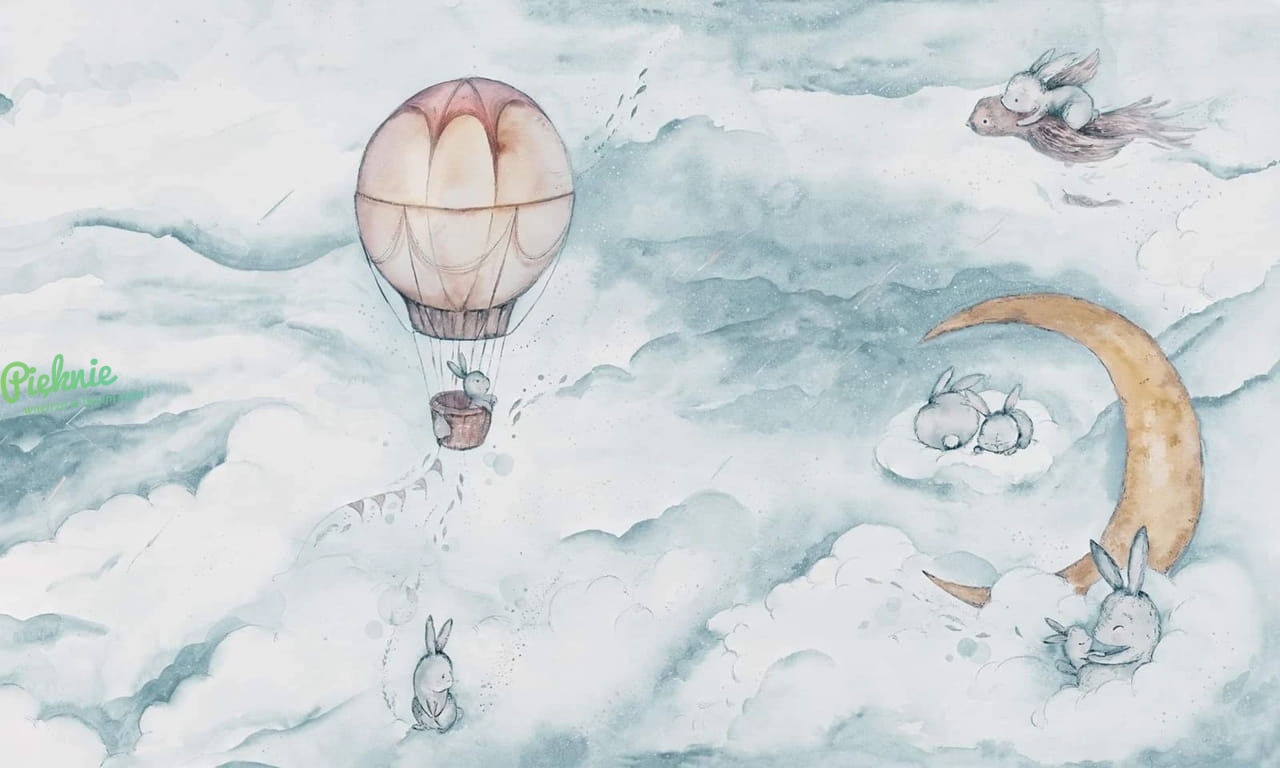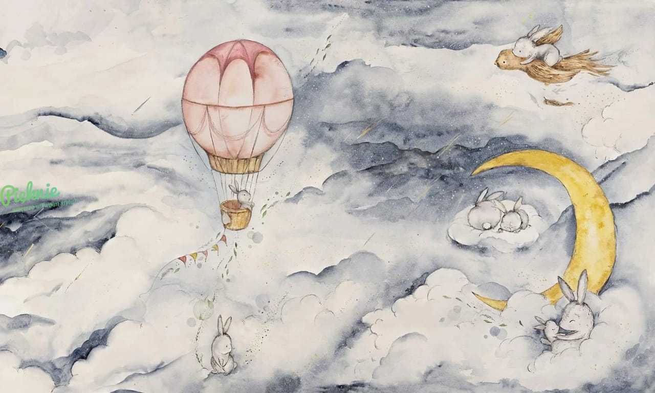 Baśniowa podróż króliki i księżyc fototapeta ścienna do pokoju dziecięcego na wymiar