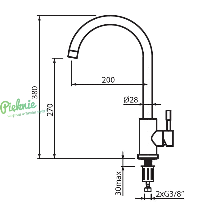 Bateria kuchenna z obrotową wylewką INOX II, wysokość 380mm