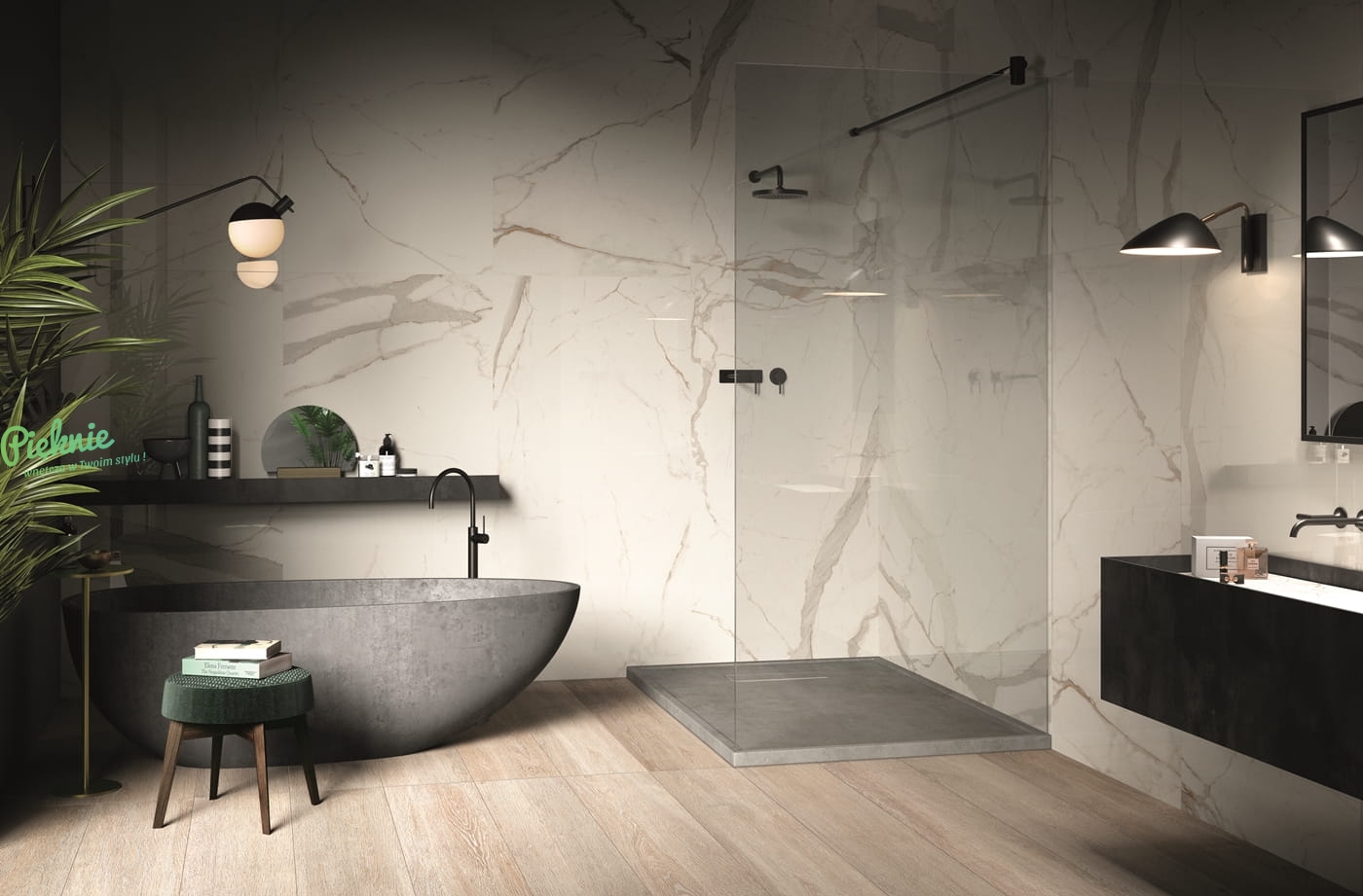 Płytki Lafaenza Bianco połysk.