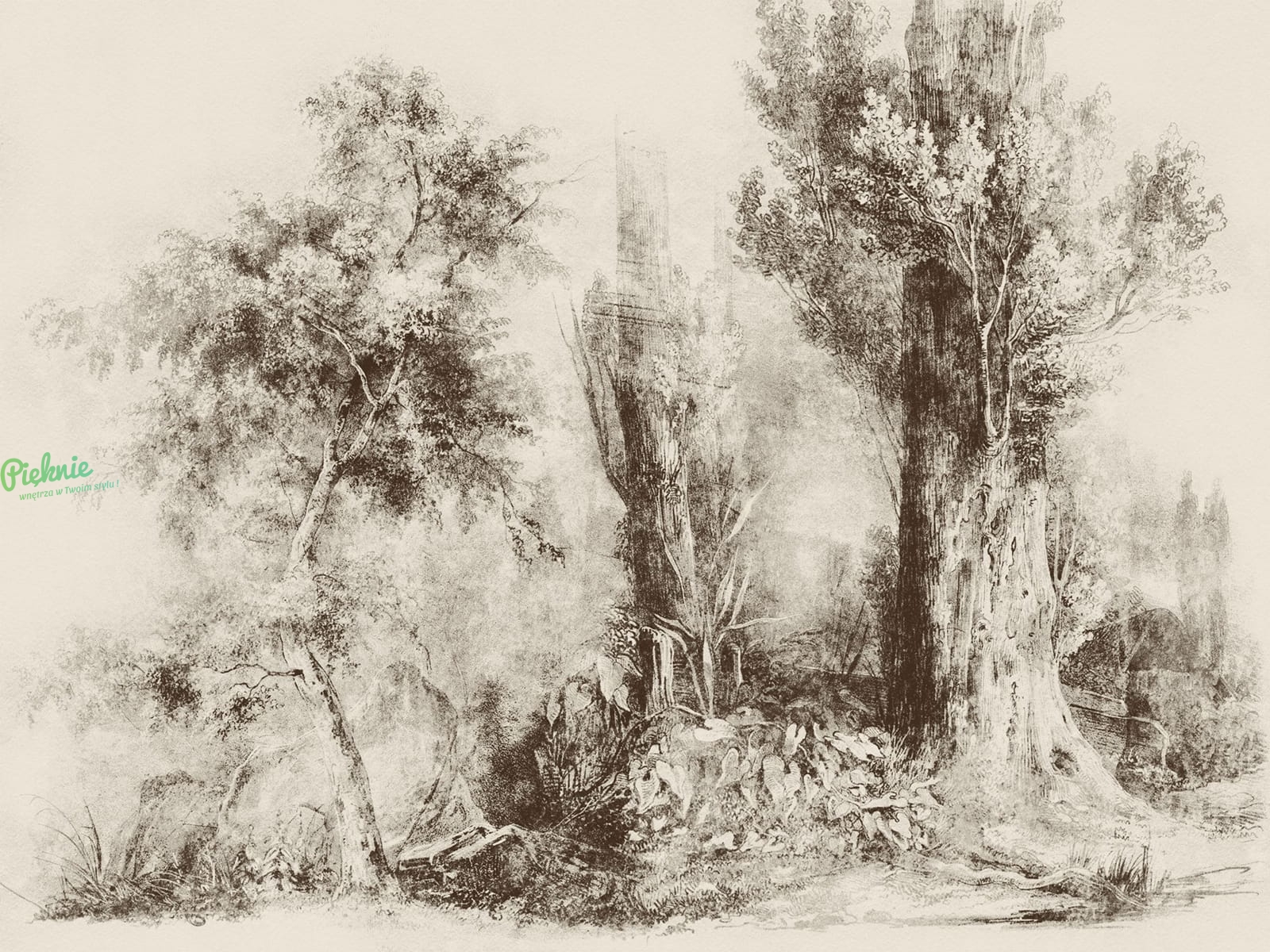 Calm Beige Wall Art fototapeta na wymiar indywidualny - szkicowane drzewa beżowe