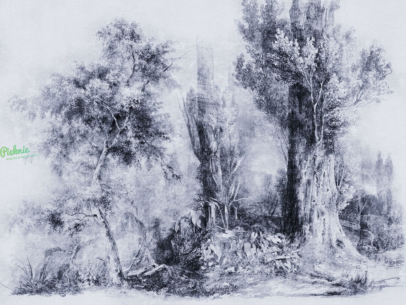Calm Blue Wall Art fototapeta na wymiar indywidualny - szkicowane drzewa niebieskie