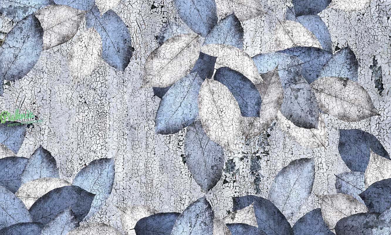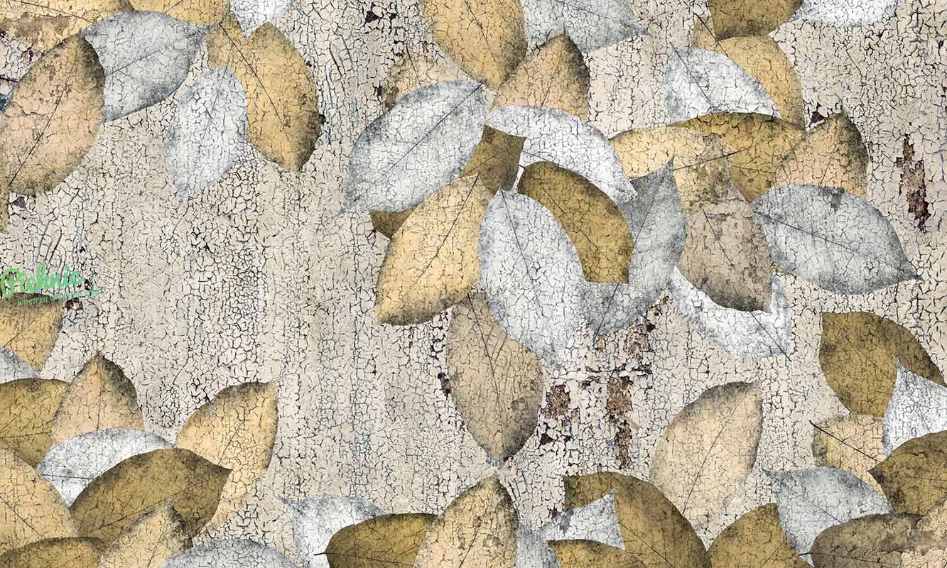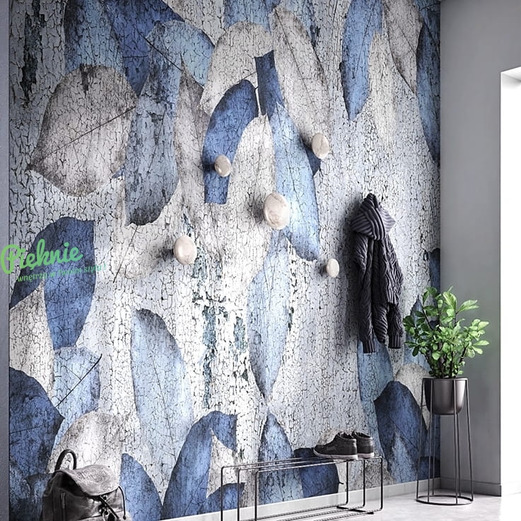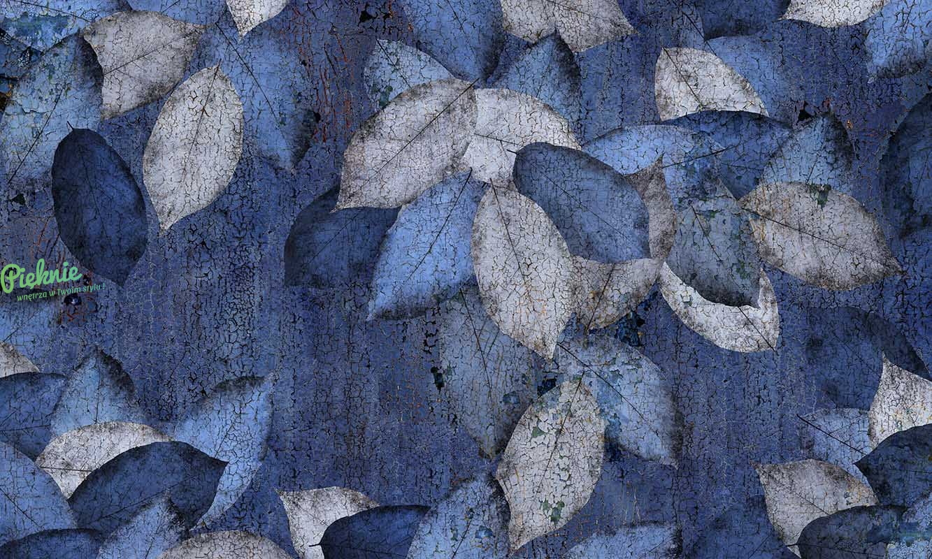 Tapeta na fizelinie z motywem złotych lub niebieskich liści.