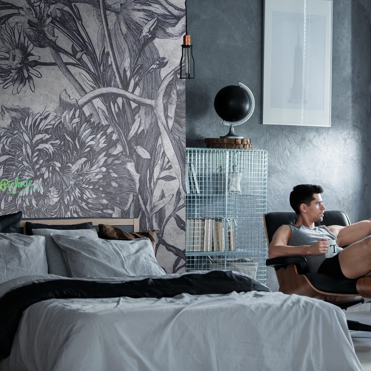 Ciemnoszare betonowe kwiaty fototapeta na fizelinie jak obraz - wymiar indywidualny