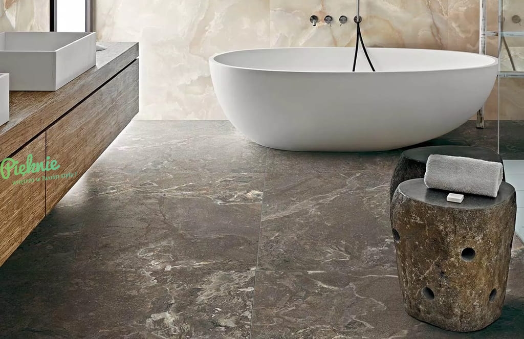 Włoskie płytki Florim Creative Design Onyx&More (dawniej Casa dolce Casa - Casamood). Wykończenie strukturalne, antypoślizgowe (slate-hammered).
