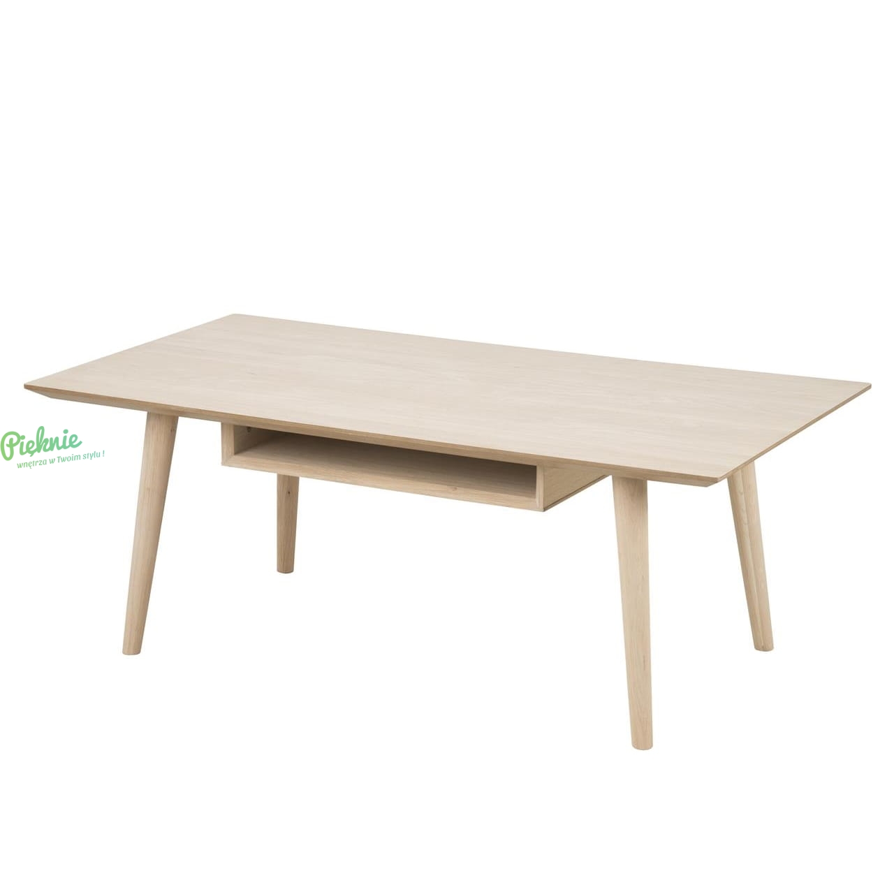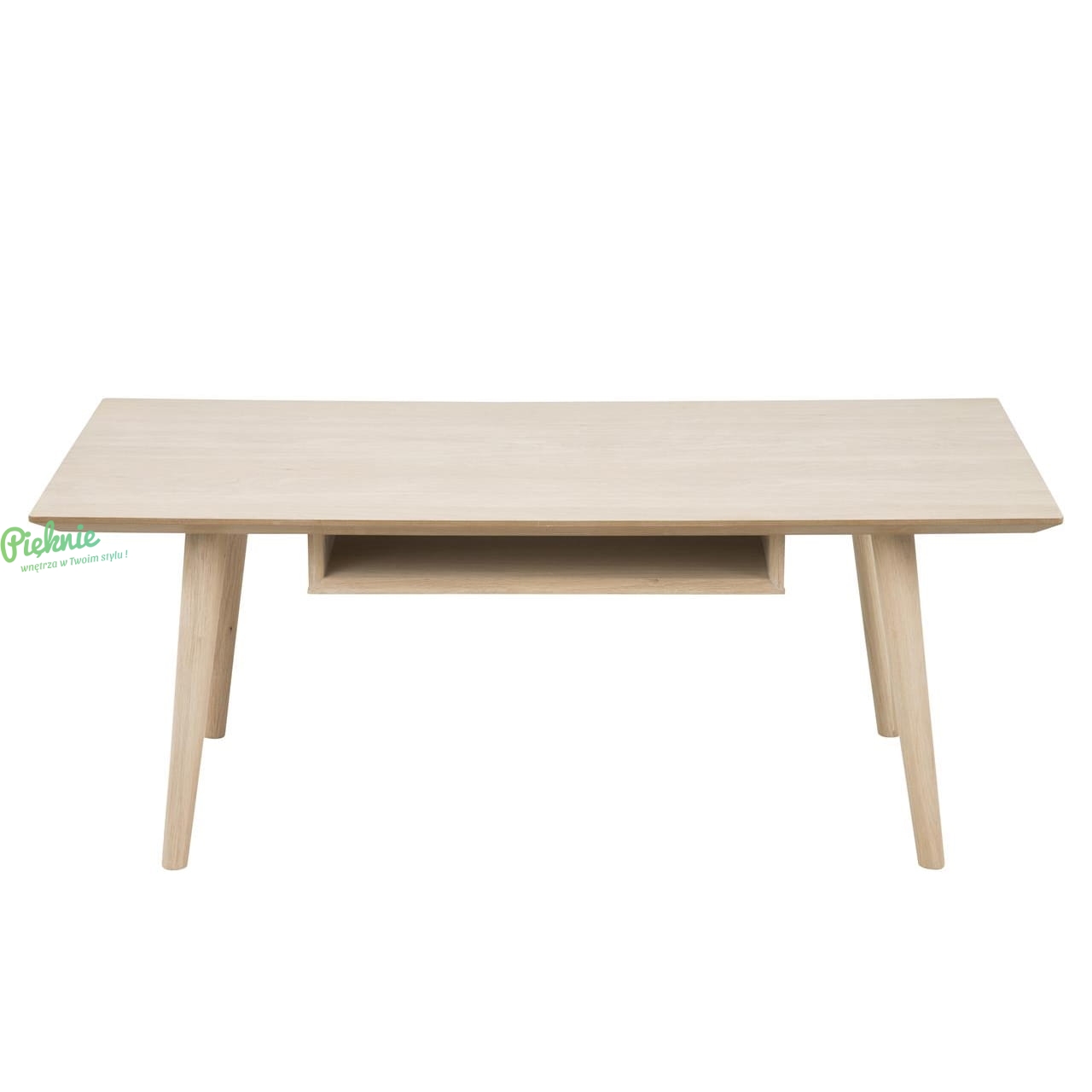 Drewniany stolik kawowy w skandynawskim stylu 115x60 ława z półką