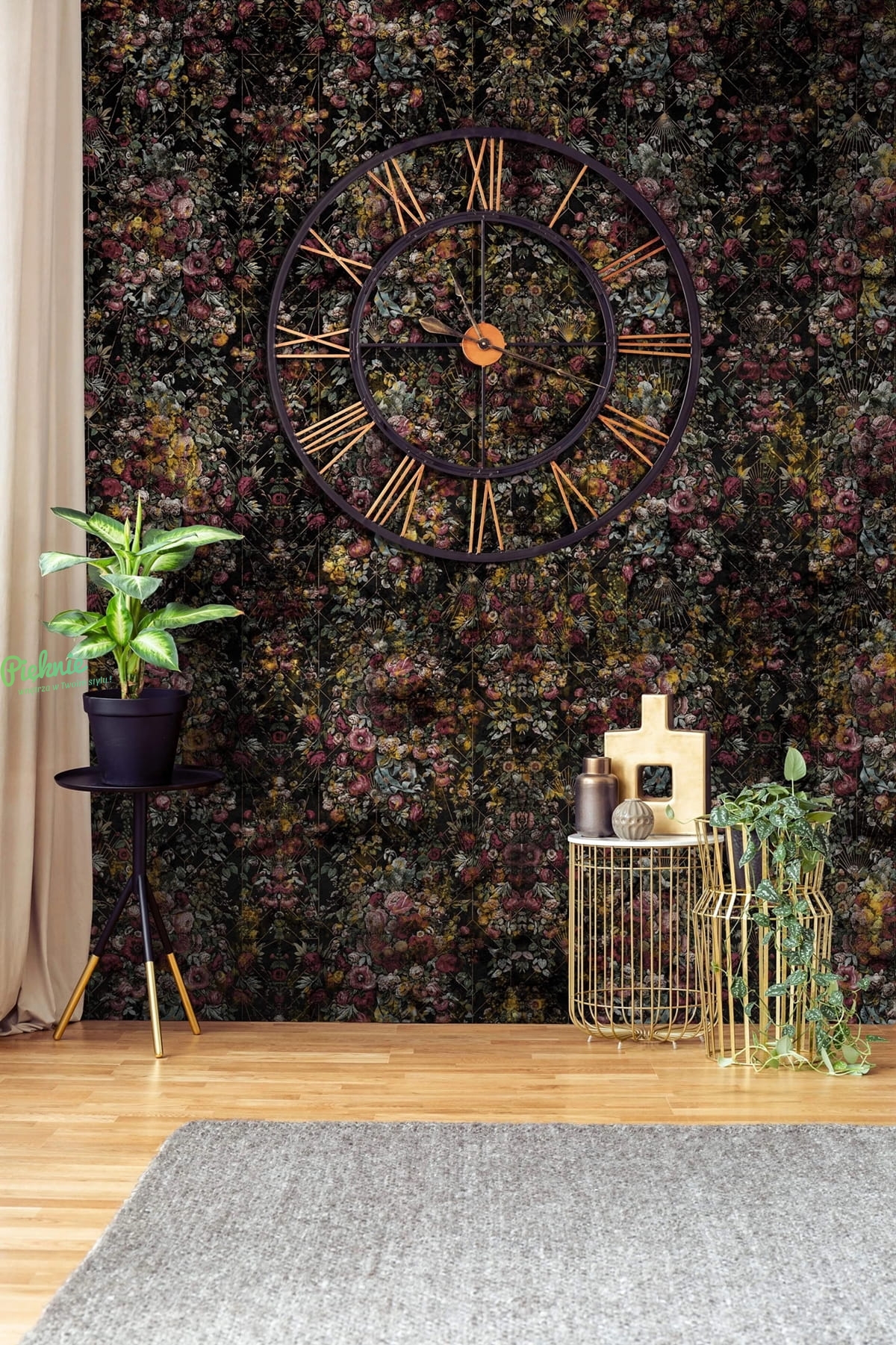 Drobne kwiaty na czarnym tle fototapeta na wymiar Opulence Glamour Black