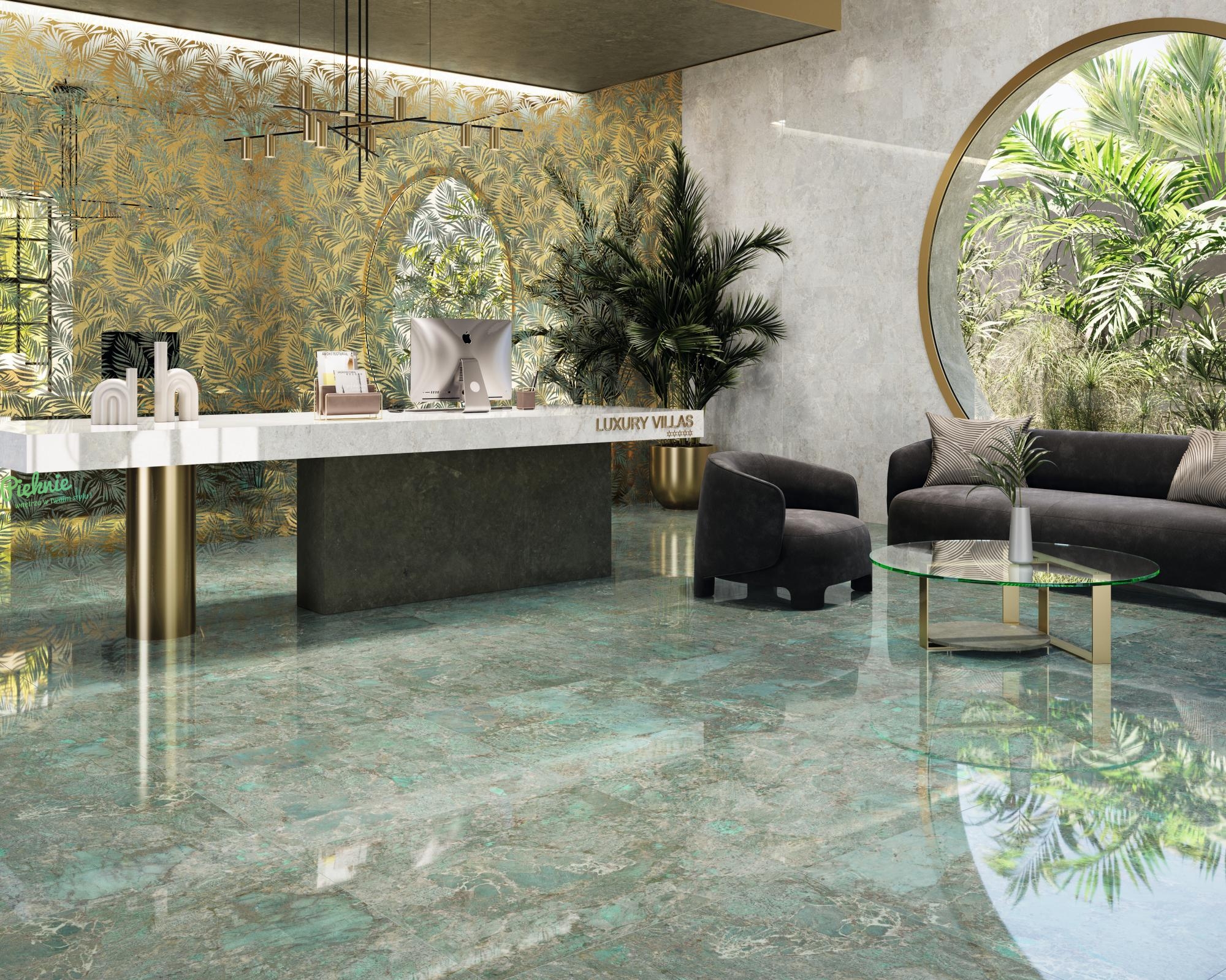 Dune Amazonite płytki gresowe z połyskiem w kolorze turkusu / zieleni.