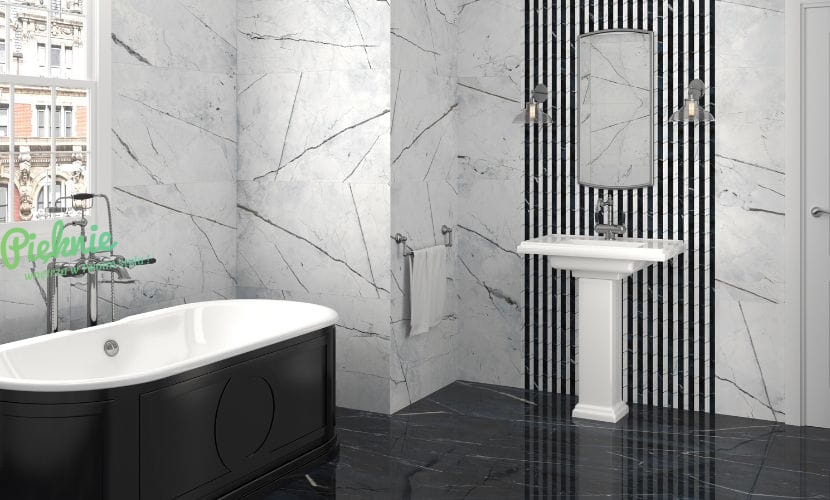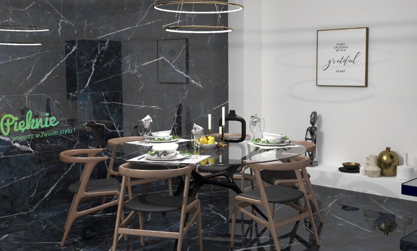 Czarny marmur z szarą żyłą Dune Black Calacatta.