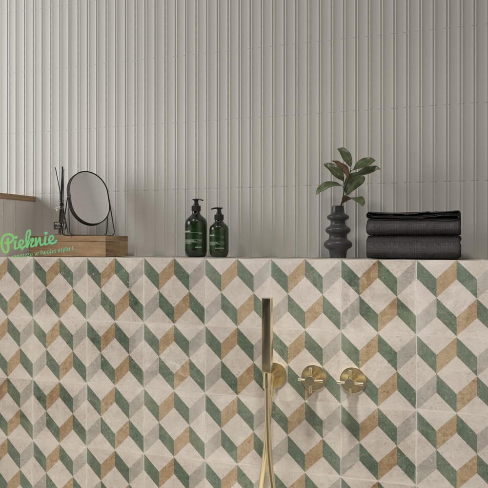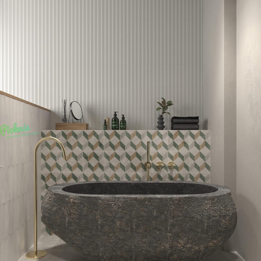 Dekor ścienny Dune Milano Scala. Matowe, akwarelowe wykończenie nadaje płytce subtelny charakter. Dune Scala to uzupełnienie płytek ściennych z kolekcji Milano, która dzięki strukturze wprowadza teksturę, dynamikę i elegancję do wnętrz.