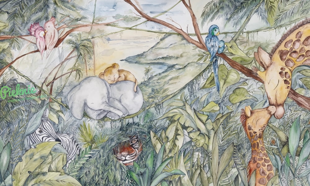Urocza fototapeta z motywem afrykańskiej fauny - idealna do pokoju dziecka.
