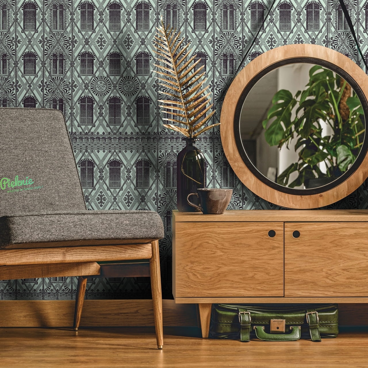 Tapeta na fizelinie z motywem stylizowanych okien.