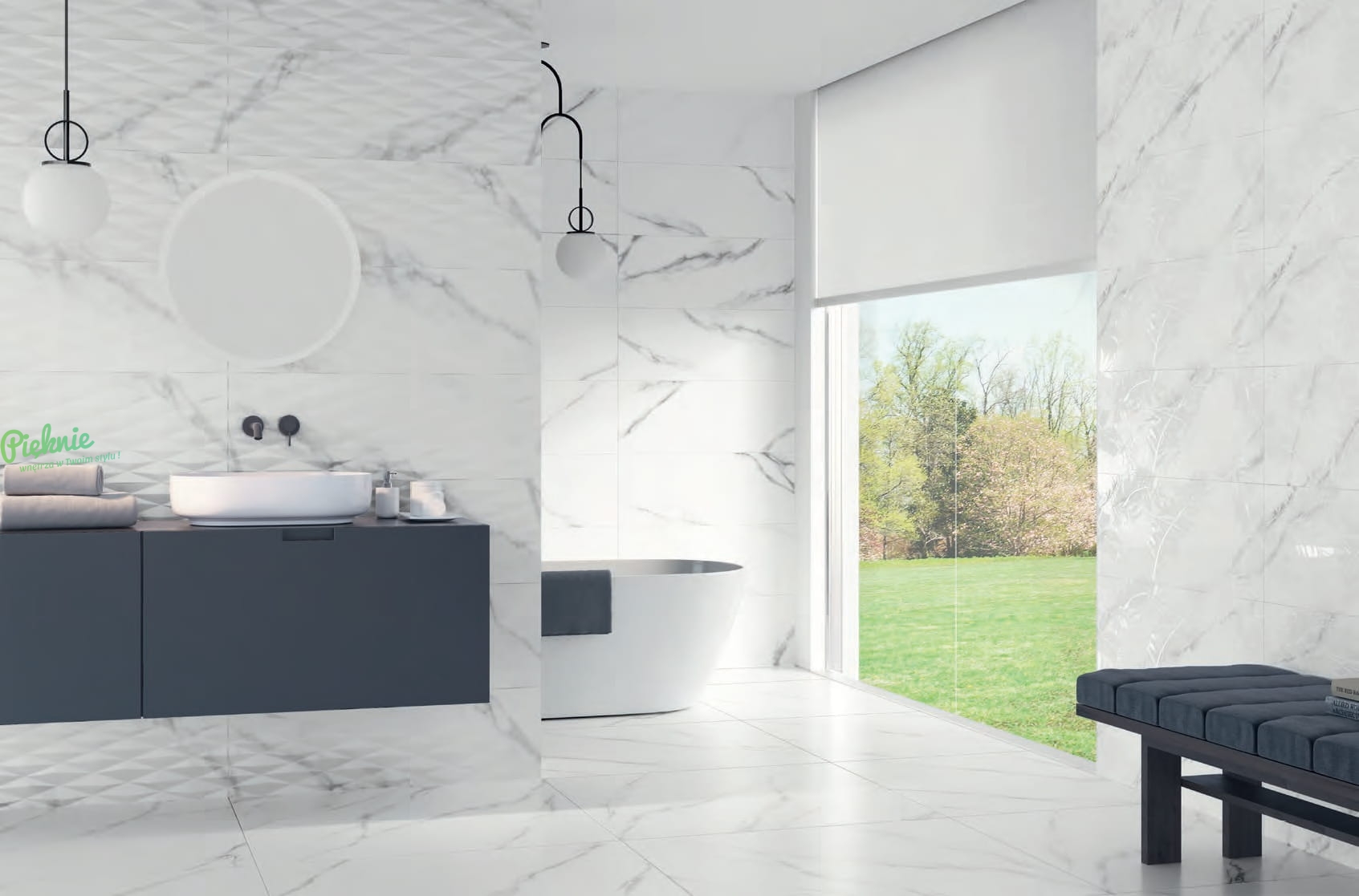 Płytki Fanal imitujące biały marmur.