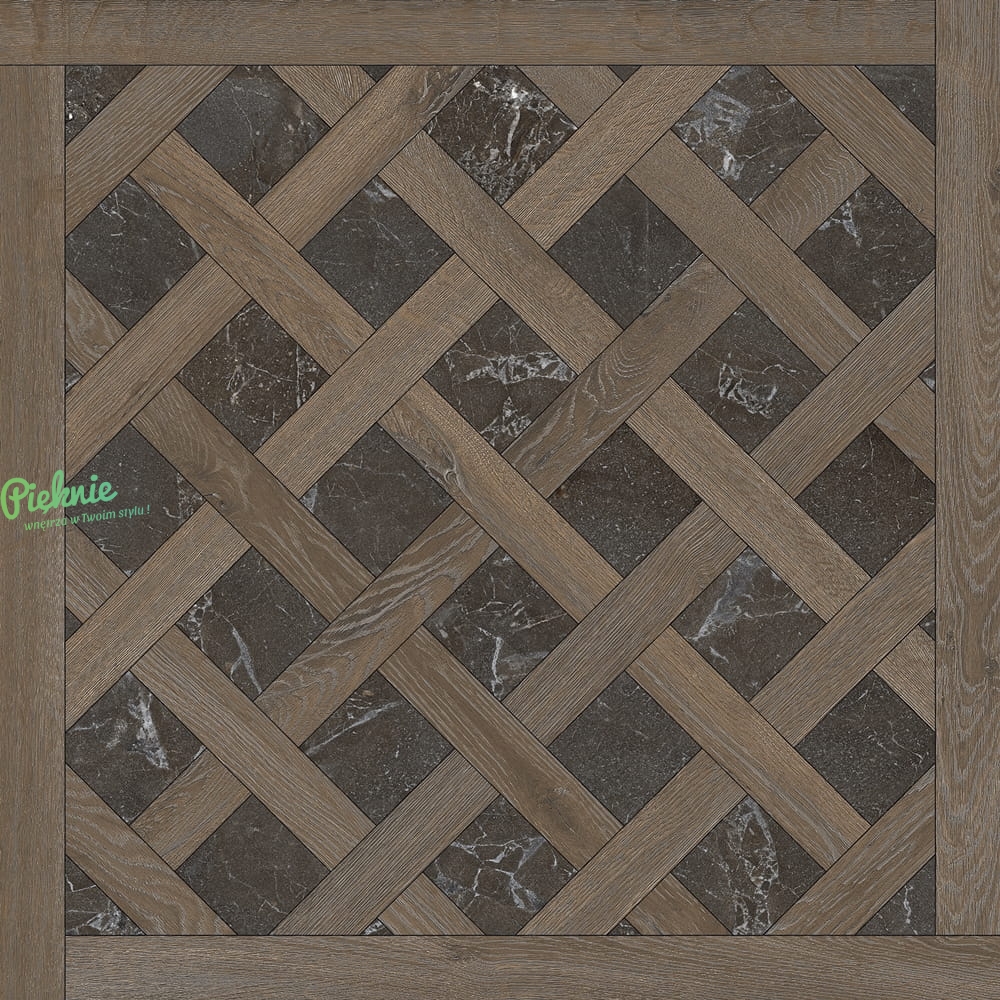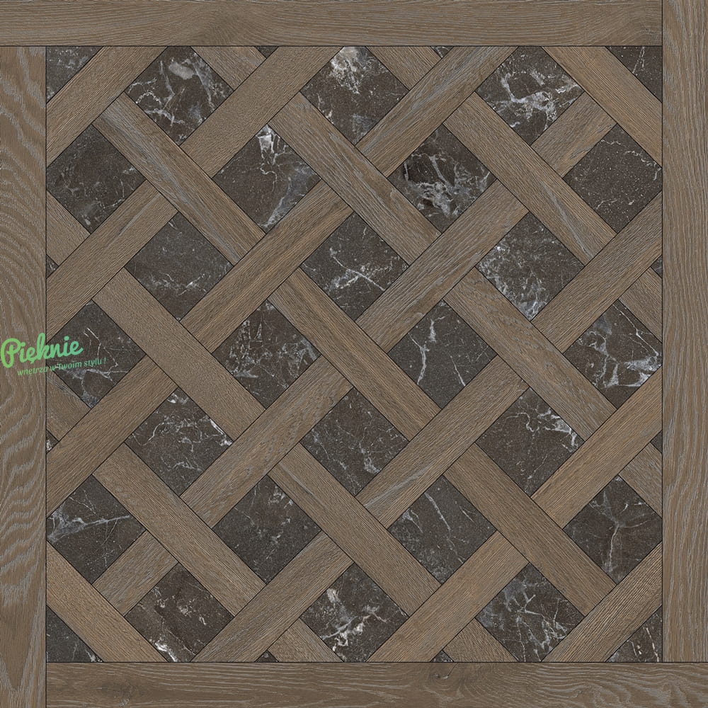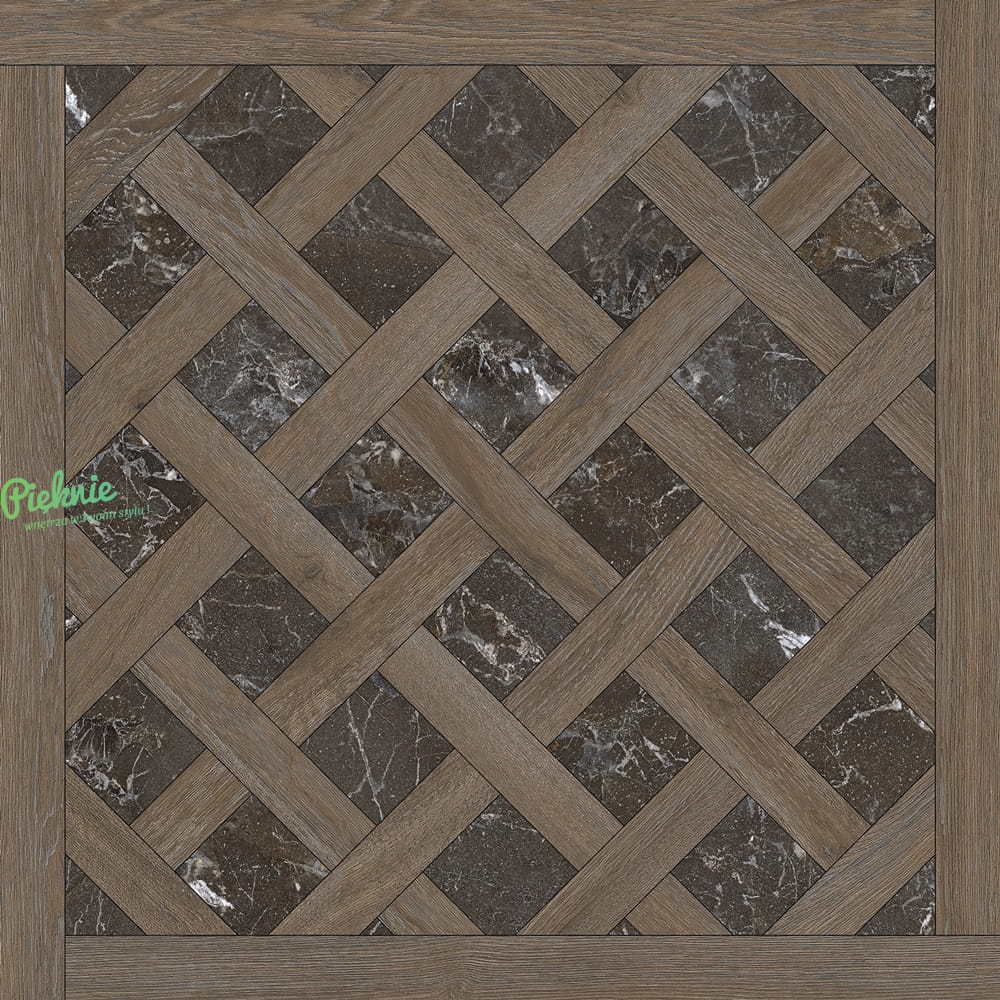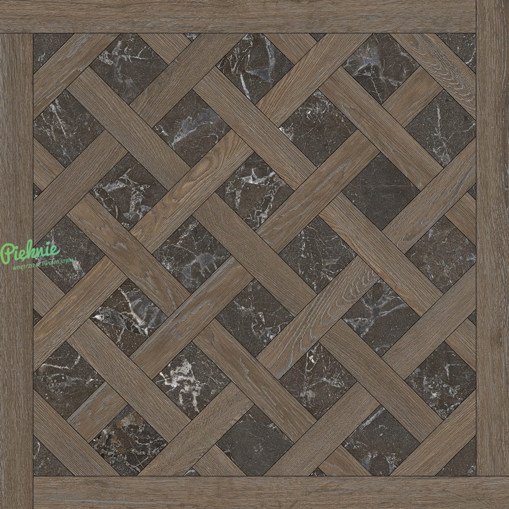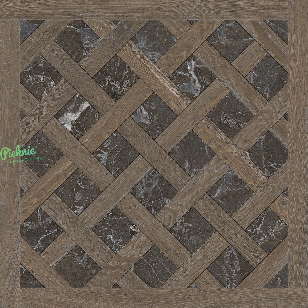 Płytki Fanal z kolekcji Opera w wersji dekoracyjnej, imitującej drewniany parkiet z marmurowymi wstawkami. Gres z efektem 3D Soft, podkreślającym wzór marmuru oraz struktury drewna.