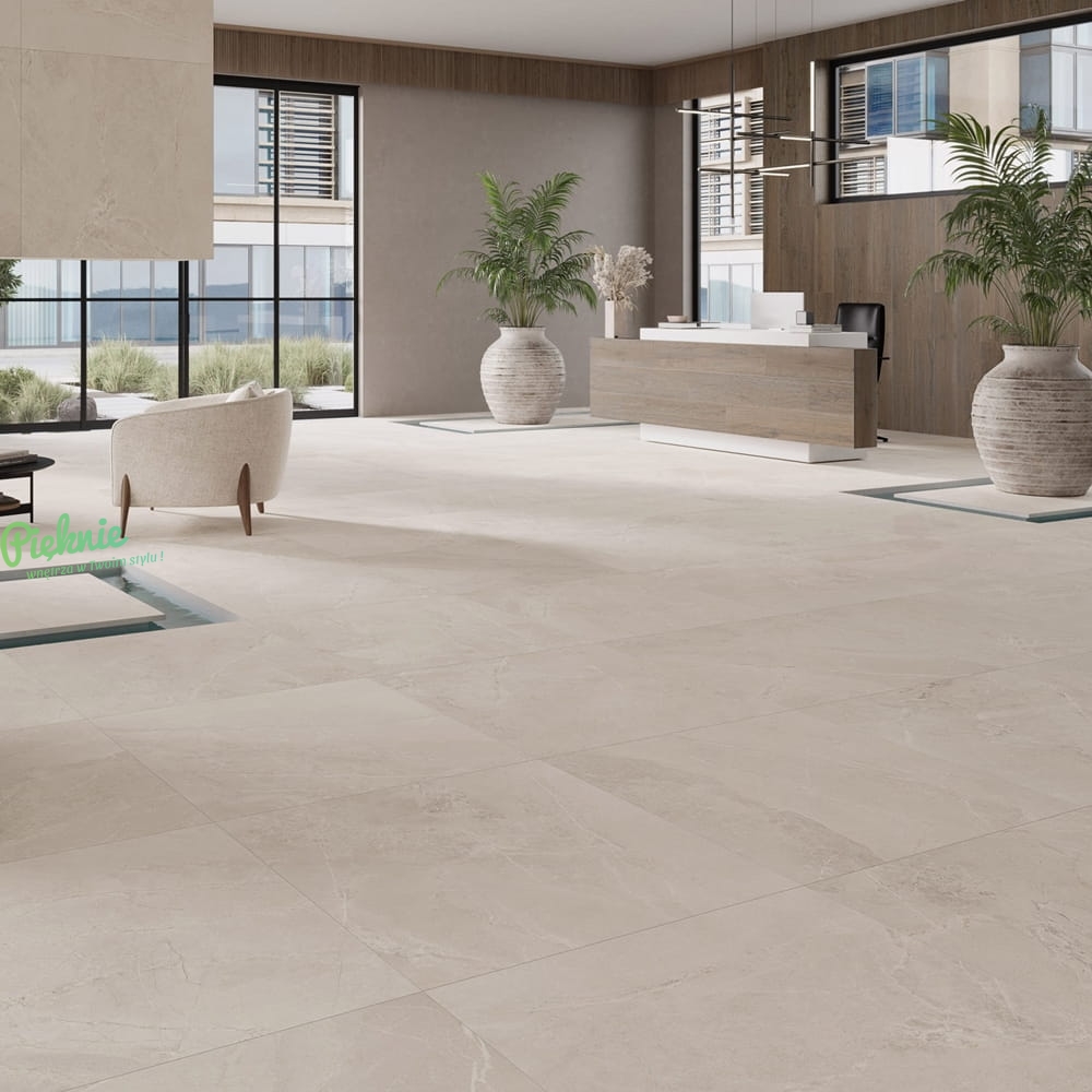 Płytki Fanal z kolekcji Moon imitujące marmur z jasną żyłą. Wykończenie lappato 3DSoft, pięknie imitujące kamień.