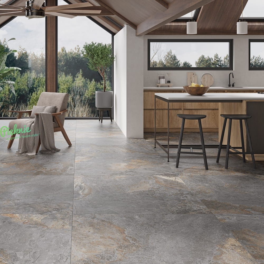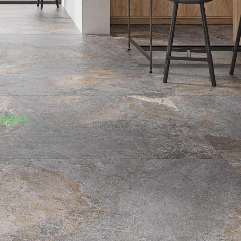 Płytki Fanal z kolekcji Nebula, utrzymane w industrialnej stylistyce. Kolekcja inspirowana łupkiem o metalicznym, strukturalnym wykończeniu.