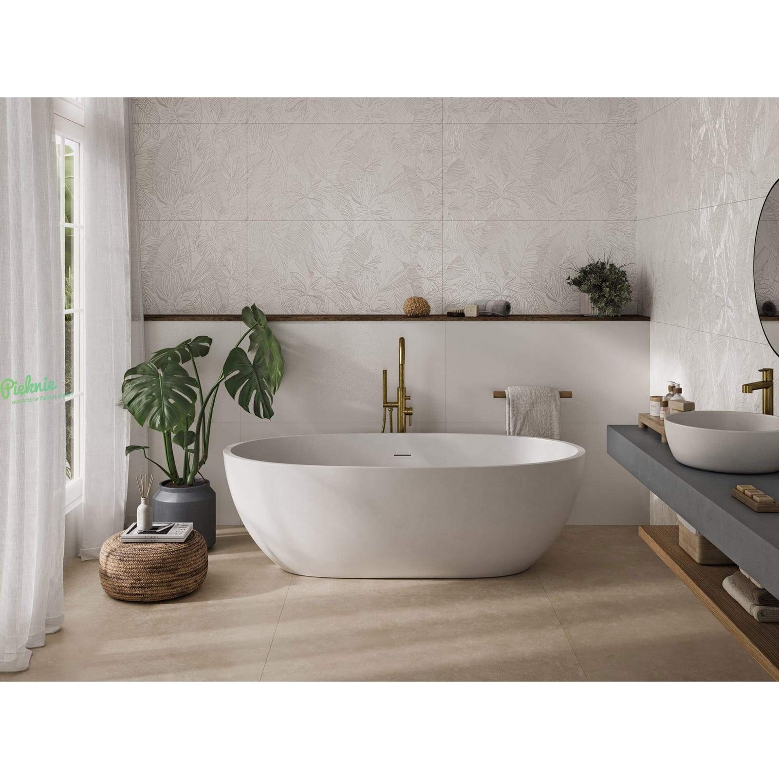 Fanal Pearl Tropic White 60x120 dekoracyjne płytki w liście