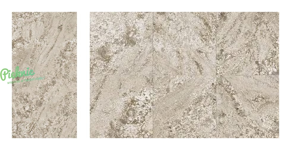 Estetyczna heterogeniczność charakterystyczna dla kamienia naturalnego została uchwycona w kolekcji za pomocą trzech wariantów graficznych: wariant 01 jest najbardziej minimalistyczny i delikatnie żyłkowany. Wariant 02 posiada wyraźniejsze i intensywniejsze wzory, z subtelnymi odcieniami przechodzącym w biel. Wreszcie, wariant 03 charakteryzuje się dużą liczbą formacji krystalicznych i wyraźnych deseni, które nadają mu falistą linię. Warianty te doskonale prezentują się połączone ze sobą, dając efekt naturalnej, kamiennej powierzchni.