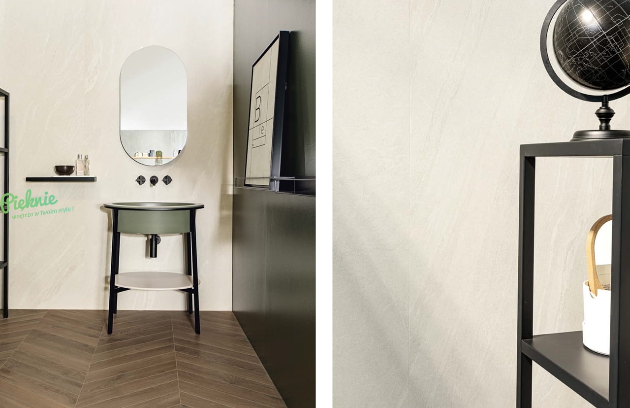 Gres Florim Contemporary Design (dawniej Cerim) Woodslate Life w formacie 60x60cm. Kolekcja składa się z płytek imitujących kamień oraz pasujących kolorystycznie desek w formacie 20x120cm.