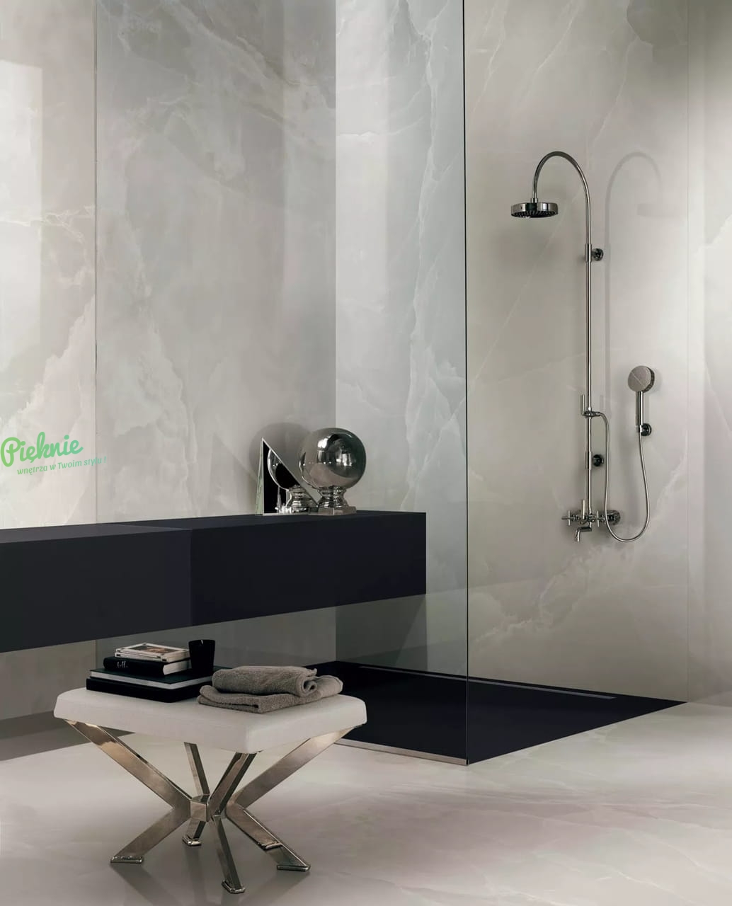 Eccentric Luxe marki Florim Luxury Design to szlachetne piękno onyksu przeniesione na niezwykle trwały materiał, jakim jest gres.