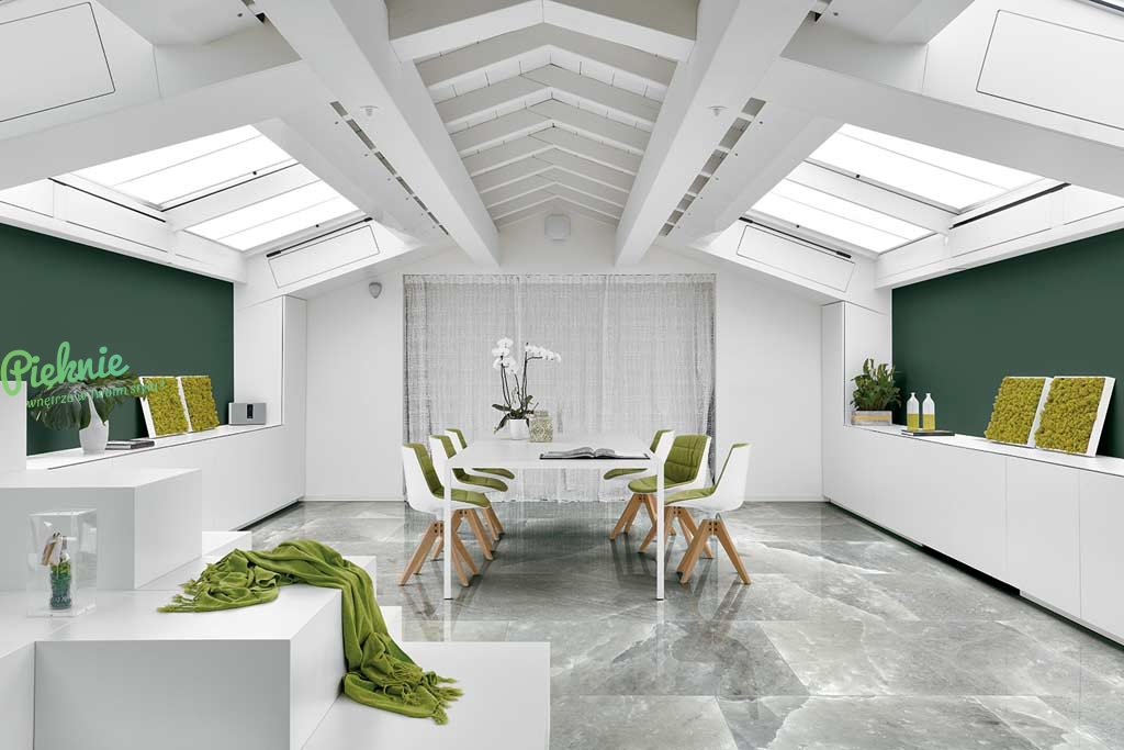 Włoskie płytki Florim Contemporary Design (dawniej Cerim) z kolekcji Rock Salt. Gres wielkoformatowy 120x120cm w połysku.