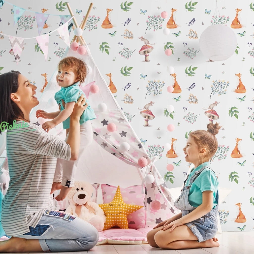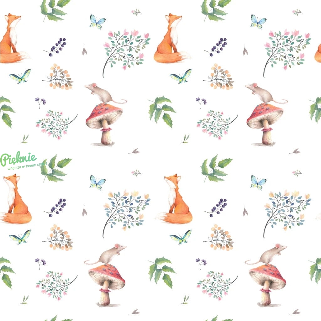 Fototapeta na wymiar do pokoju dziecięcego Little Fox lisy myszki i grzyby