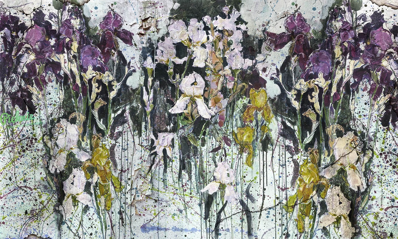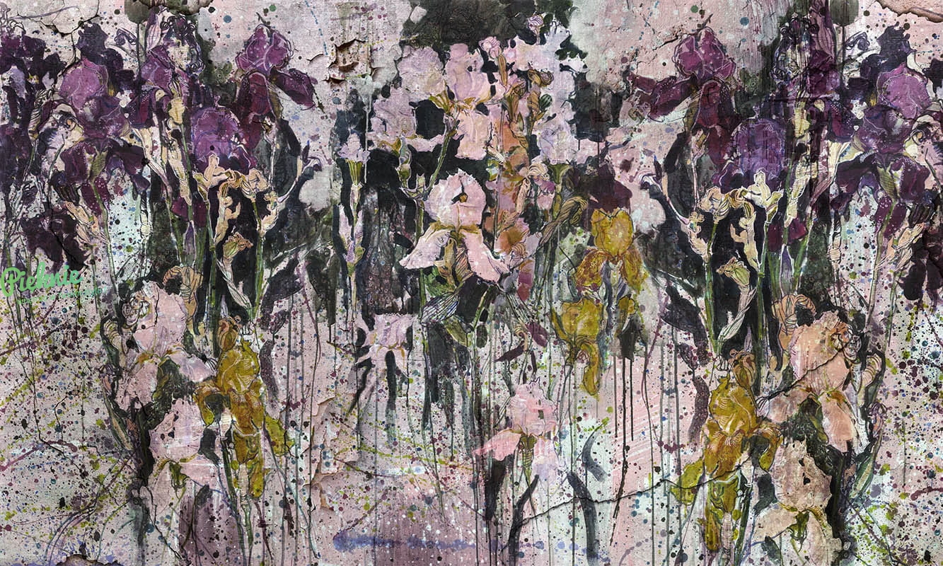 Irysy nowoczesna abstrakcyjna tapeta ścienna na fizelinie z kwiatowym motywem Blanche