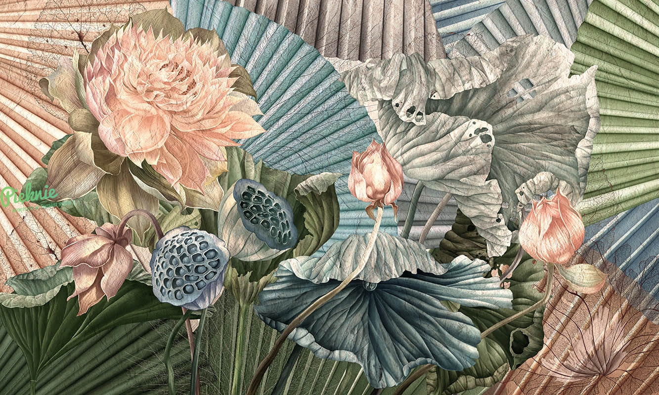 Kolorowe wachlarze orientalna tapeta na fizelinie Wonderwall Tiffany na wymiar