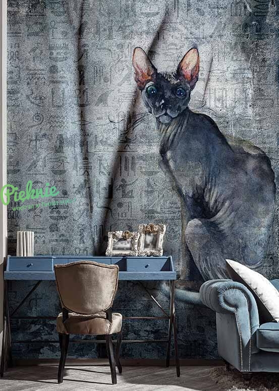Kot Sfinks i hieroglify tapeta na fizelinie z egipskim motywem Wonderwall Raquel