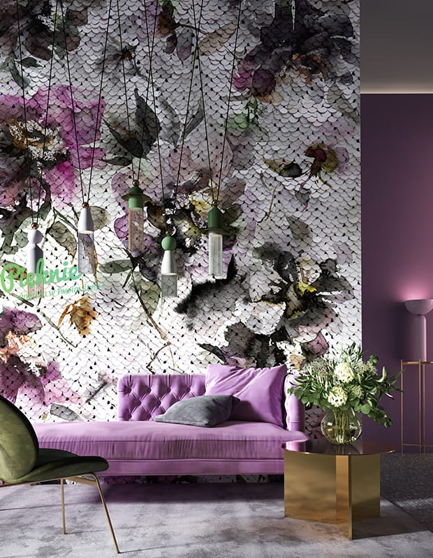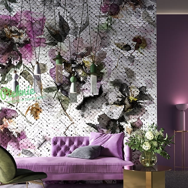 Kwiatowe pastele z deseniem łuski Megan tapeta ścienna na fizelinie w kwiaty