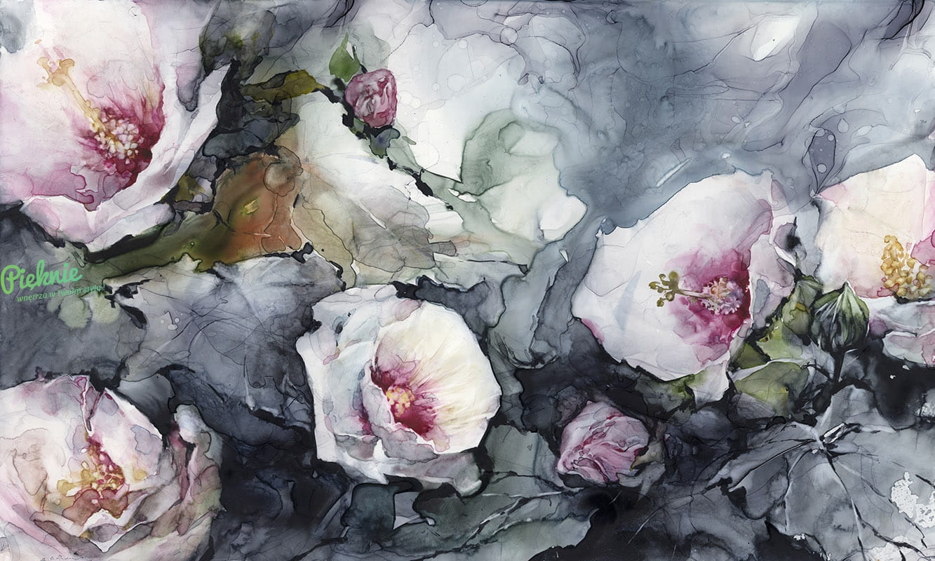 Tapeta ścienna w kwiaty hibiskusa.