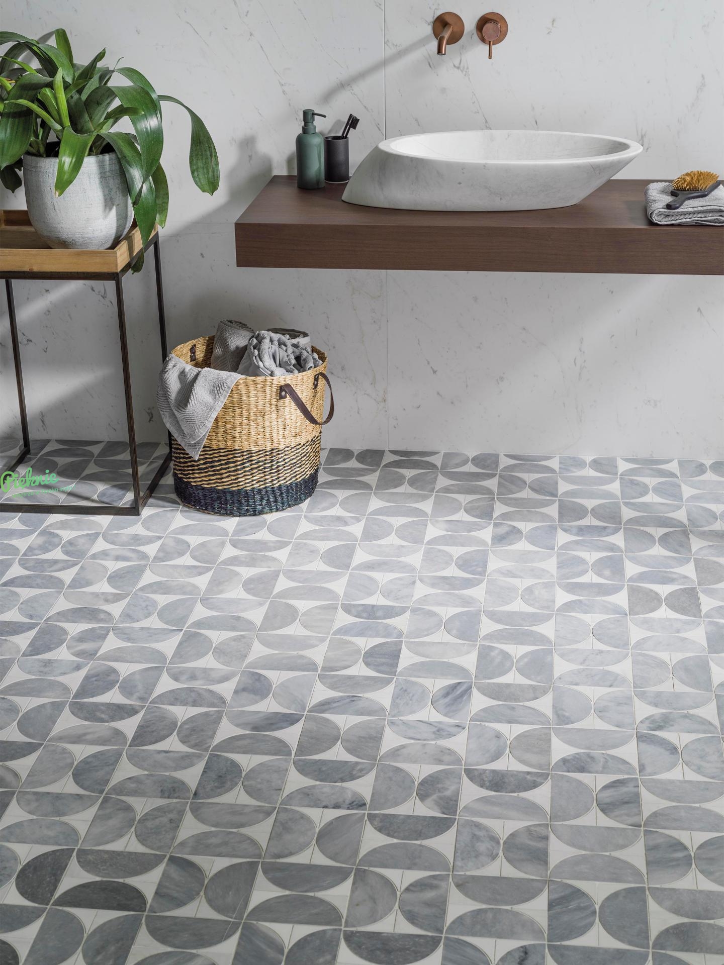 Geometryczna mozaika marki L'Antic Colonial z kolekcji Figure. Wykonana z marmuru o matowej powierzchni, świetnie spisze się jako ozdoba łazienki, kuchni i salonu.