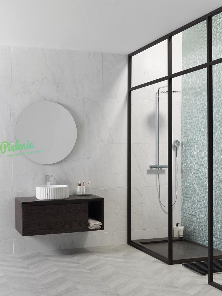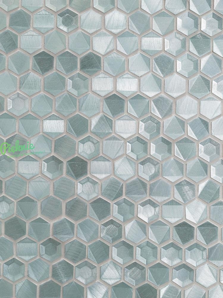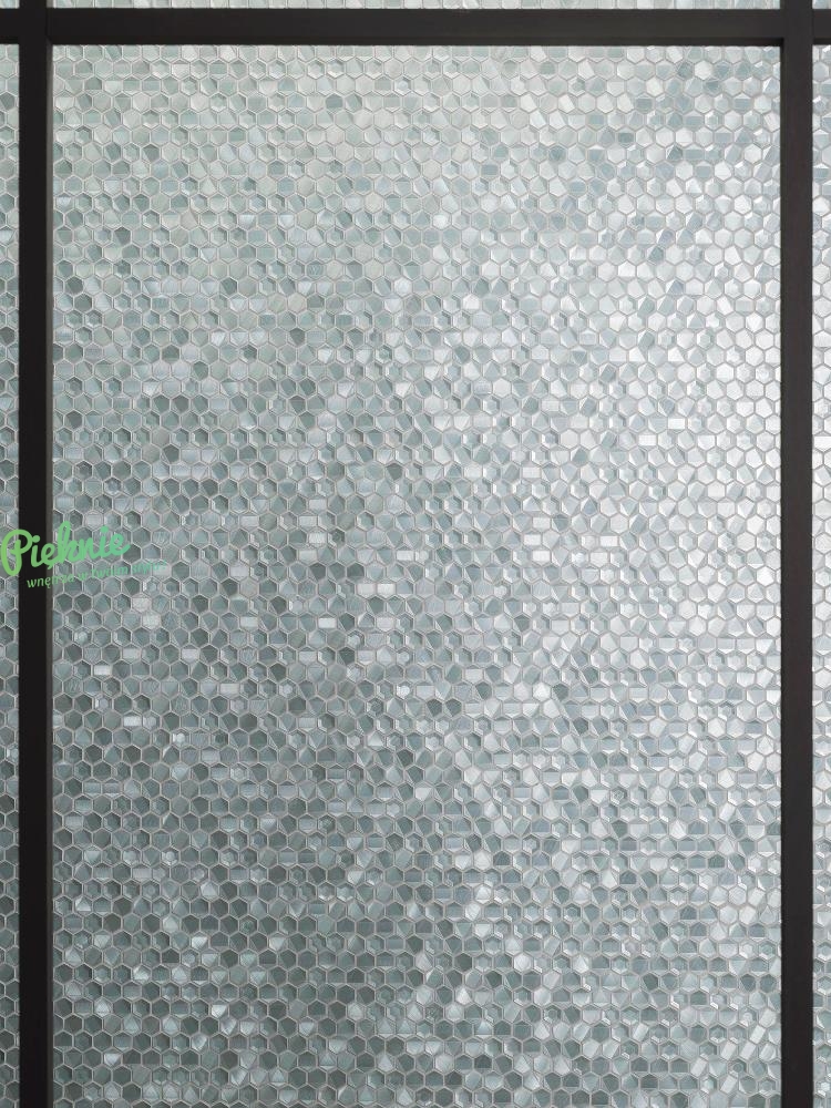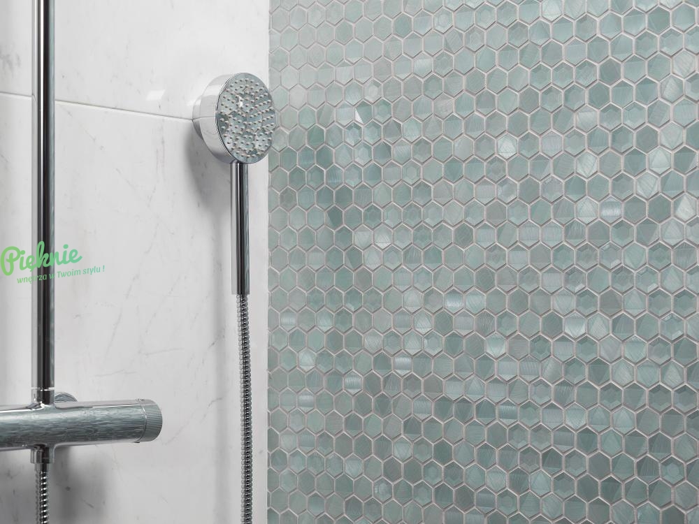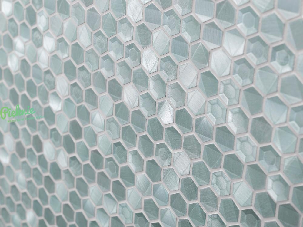 Heksagony posiadają krawędzie szlifowane pod różnymi kątami, dzięki czemu tworzą oryginalny dekor.