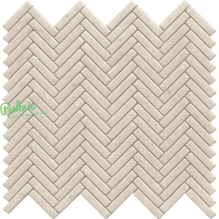 L'Antic Colonial Herringbone - szklana mozaika z kamiennym wzorem. Produkt uzupełniający kolekcję płytek Porcelanosa Durango Bone.