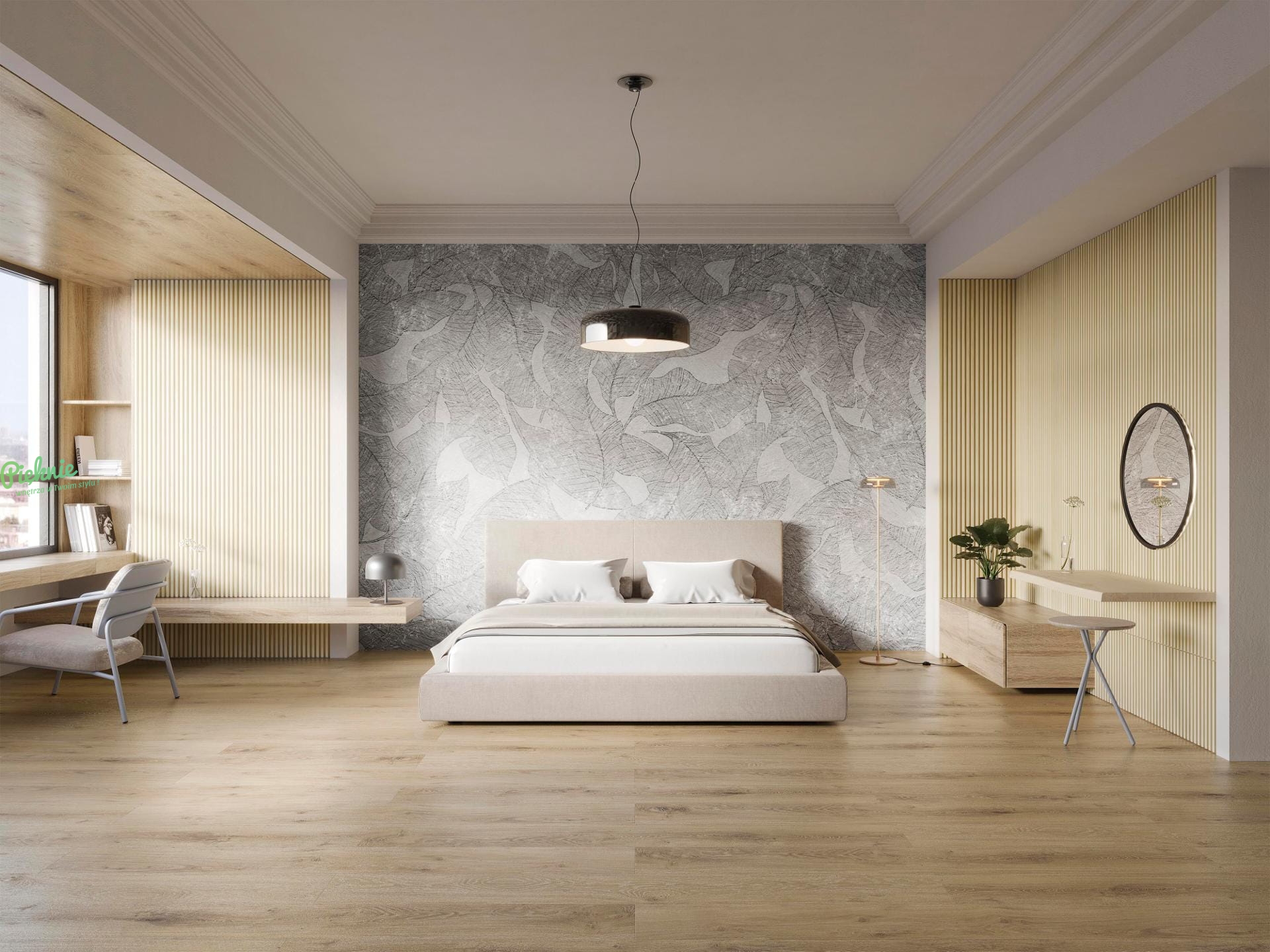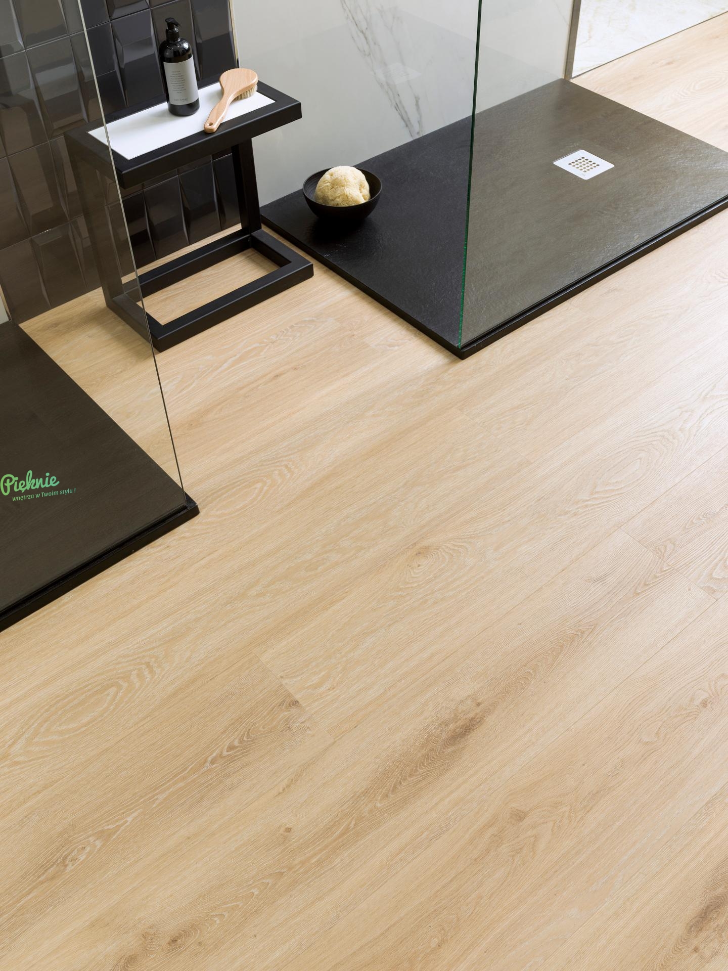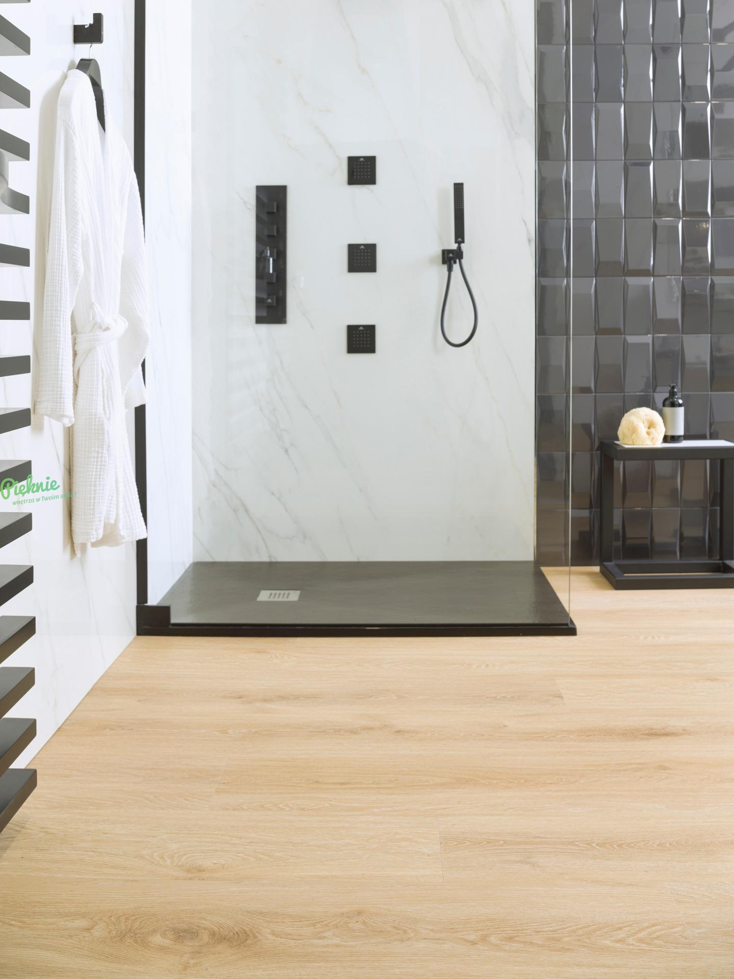 Panele winylowe hiszpańskiej marki L'Antic Colonial. Format długiej deski z naturalnym rysunkiem drewna. Panele można stosować w strefie mokrej.