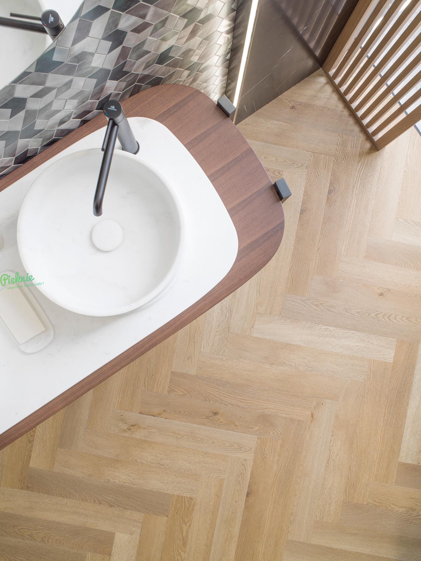 Panele winylowe hiszpańskiej marki L'Antic Colonial. Klasyczny wzór jodełki doskonale sprawdzi się w każdym wnętrzu.