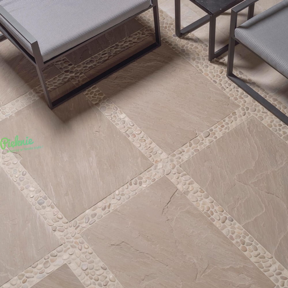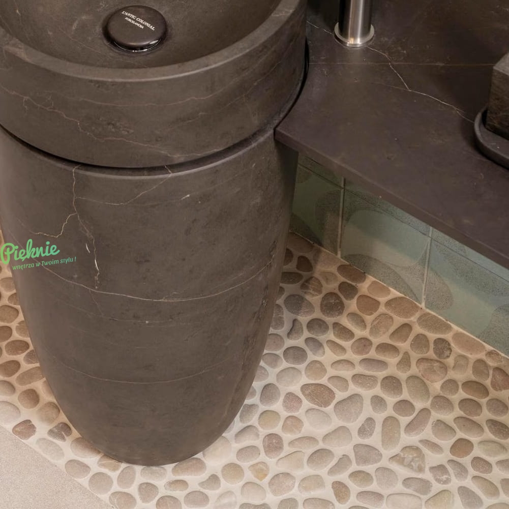 Mozaika L'Antic Colonial Paradise z naturalnego kamienia o postarzonej powierzchni, wykonana z gładkich, nieregularnych otoczaków. Podana grubość jest wartością orientacyjną – ze względu na naturalne pochodzenie kamienia, poszczególne elementy mogą mieć nieco większą grubość. Mozaika jest uniwersalna, można stosować ją na podłogi i ściany wewnątrz pomieszczeń, na zewnątrz budynków a także pod prysznicami oraz w okolicy basenów.