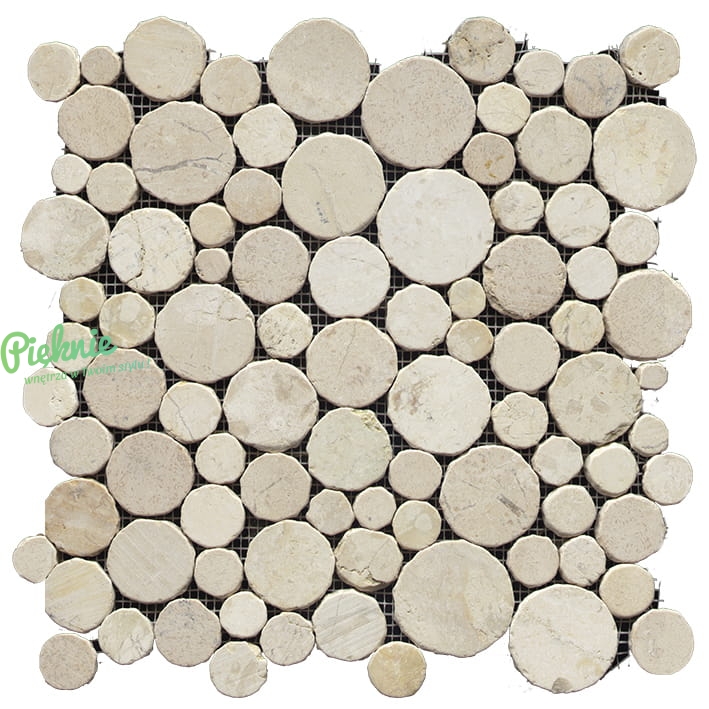 Mozaika Paradise wykonana z marmuru o wzorze ułożonym z niewielkich kamieni o owalnym kształcie. Mozaika jest uniwersalna, można stosować ją na podłogi i ściany wewnątrz pomieszczeń, na zewnątrz budynków a także pod prysznicami oraz w okolicy basenów.