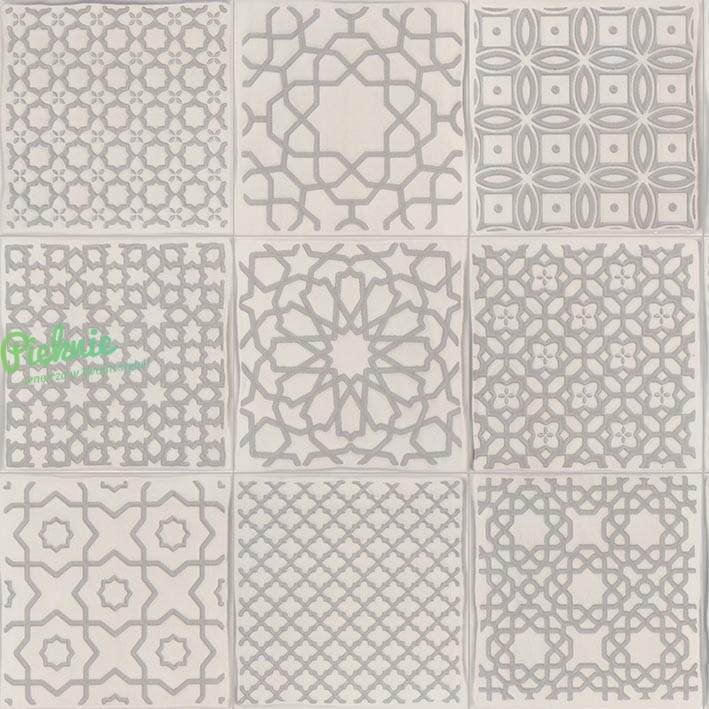 Dekoracyjne kafelki ścienne Lantic Colonial z kolekcji Ronda. Stylizowane na postarzane płytki w stylu vintage, urzekają koronkowymi wzorami i kolorystyką. Produkt idealnie sprawdzi się w kuchni oraz w łazience.