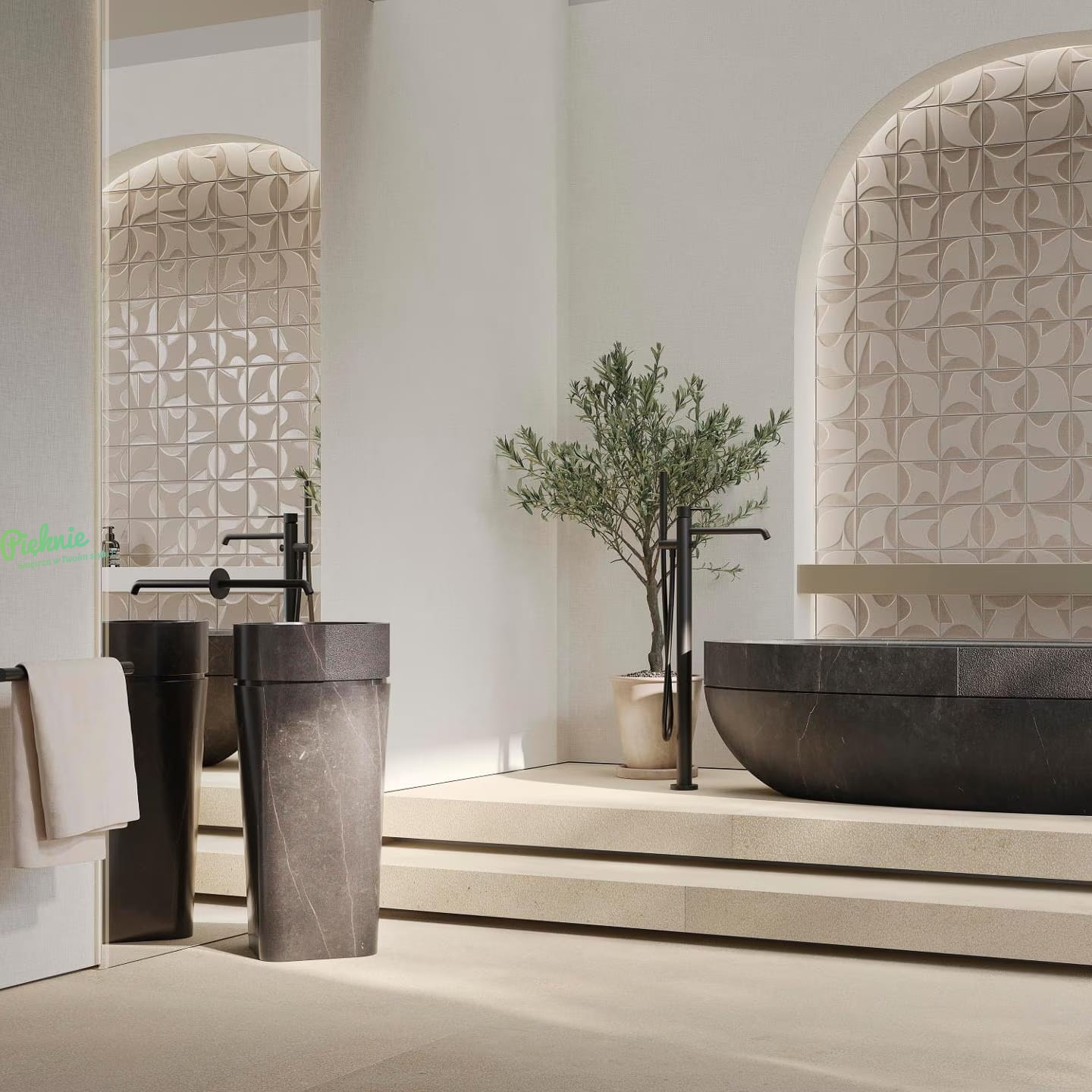 Płytki doskonale sprawdzą się w salonach, łazienkach, kuchniach oraz w nowoczesnych przestrzeniach komercyjnych. Ich ponadczasowy charakter pasuje do wnętrz minimalistycznych, skandynawskich, modern classic.