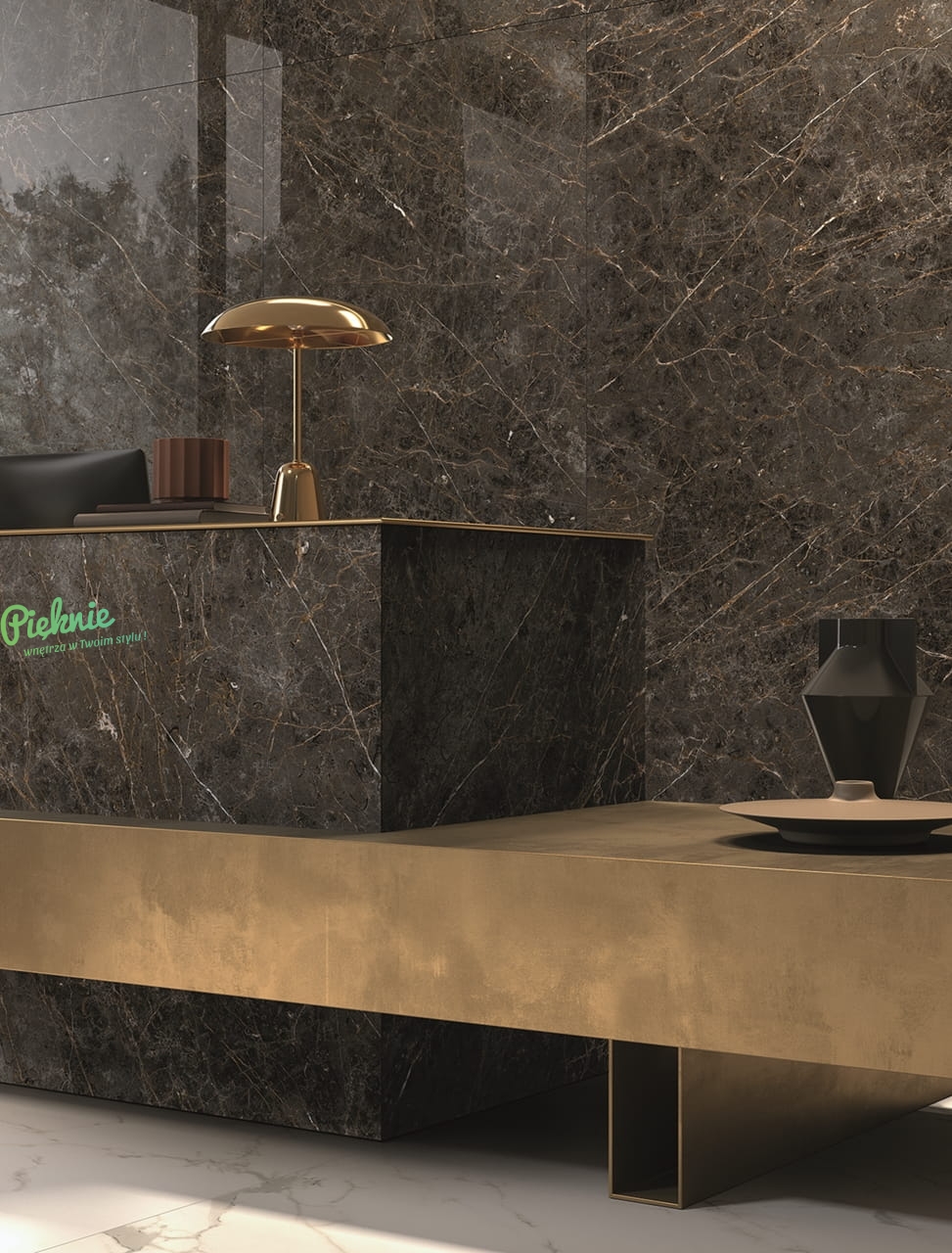 LaFaenza Aesthetica Golden Black płytki gresowe 120x120 połysk