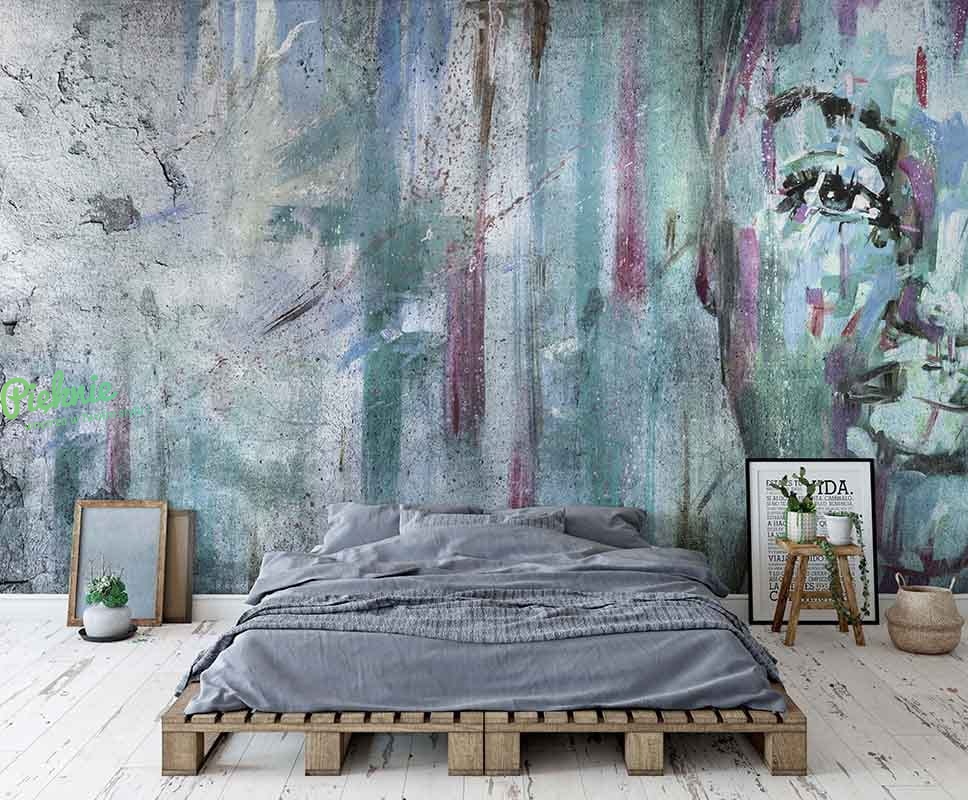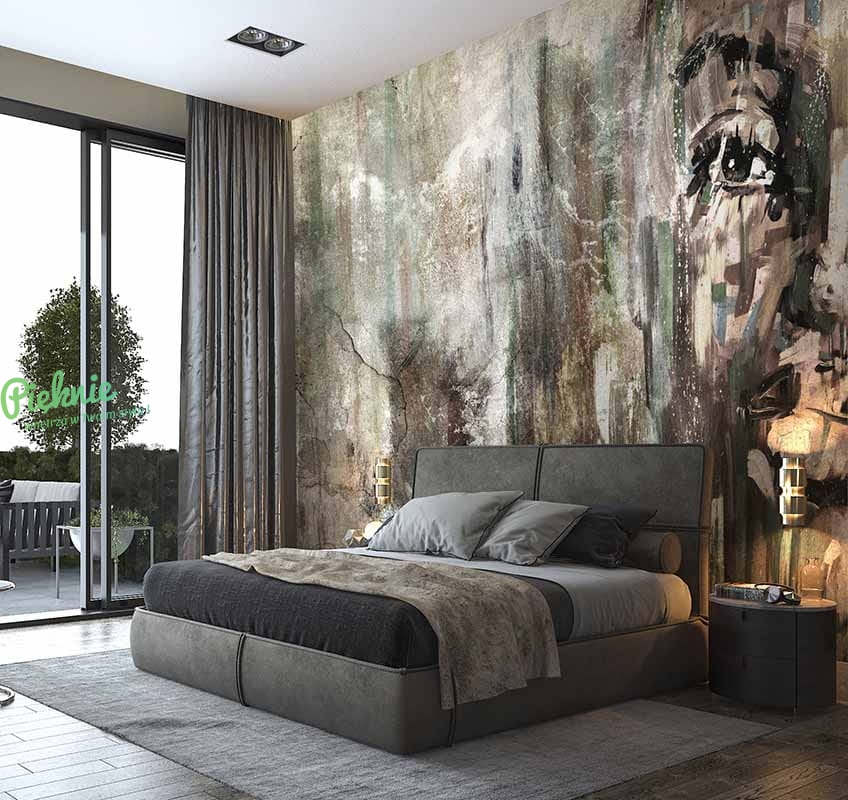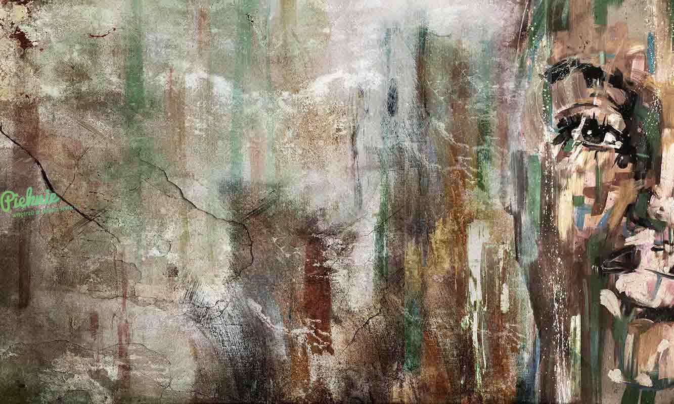 Tapeta na fizelinie przedstawiająca wizerunek kobiecej twarzy.